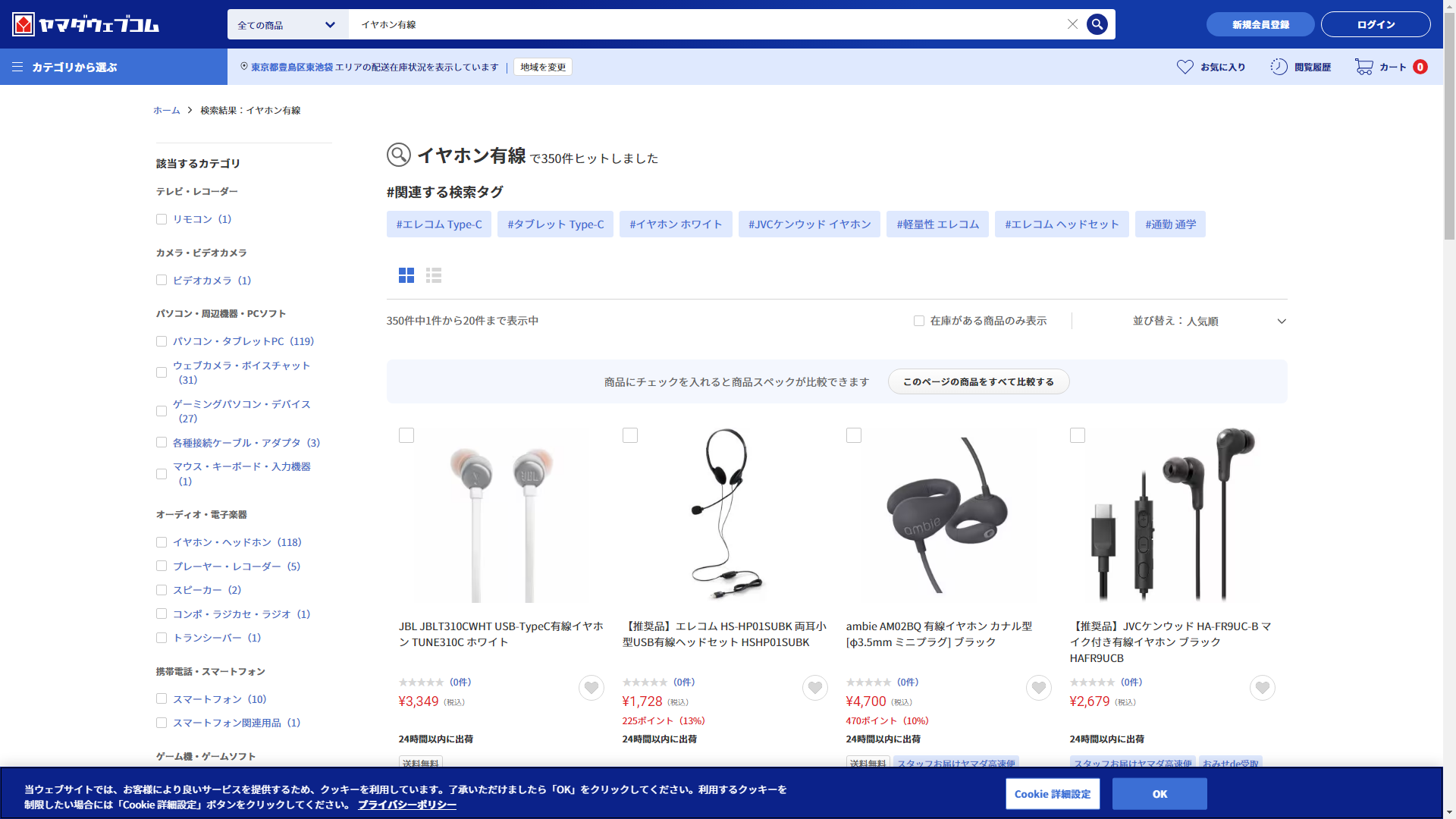 イヤホン有線はヤマダデンキで買える