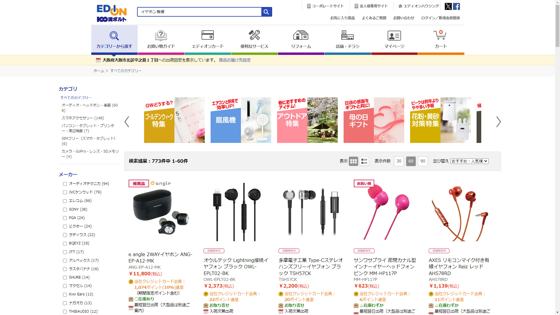 イヤホン有線はEDIONで販売されています