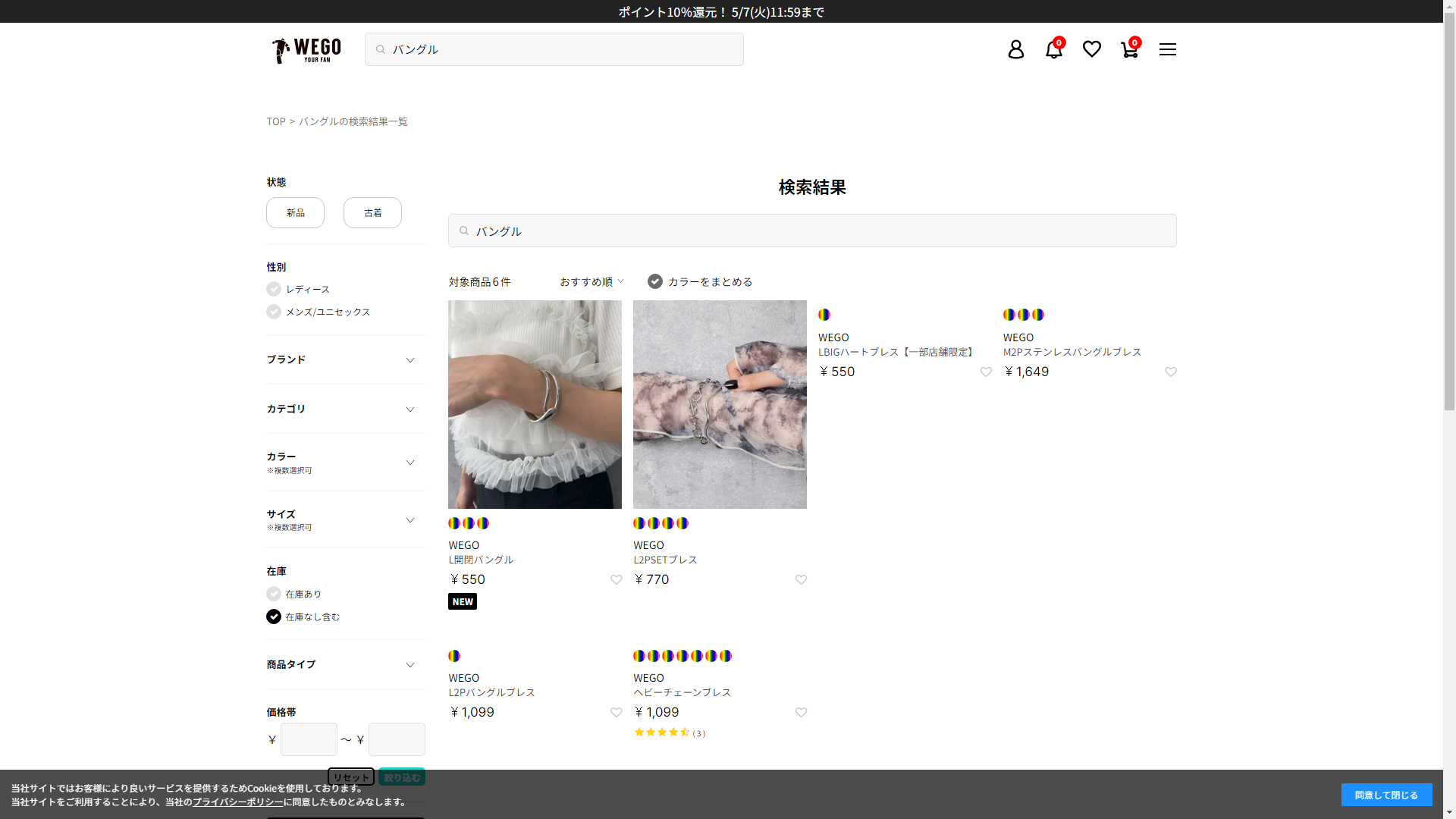 バングルはWEGOには売っていない