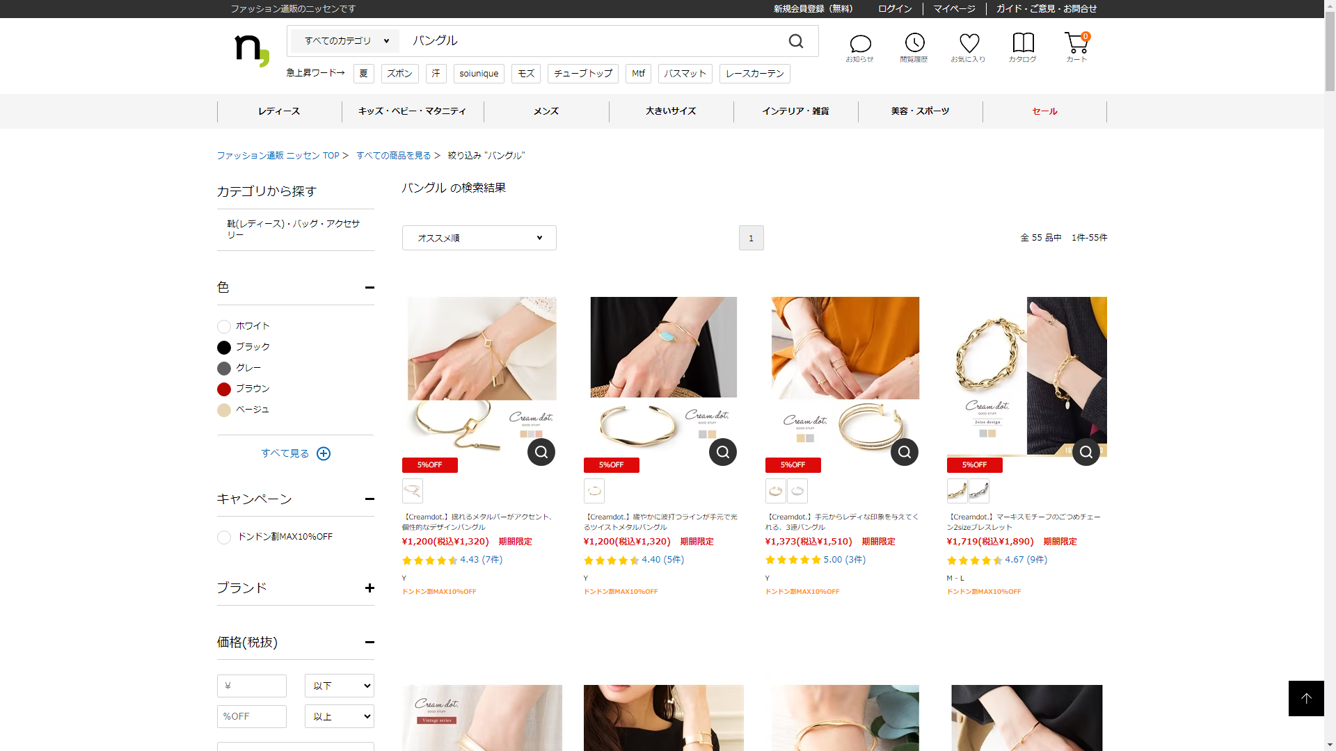 お調べしたところ現在、ニッセンではバングルに関連する商品が販売されています。