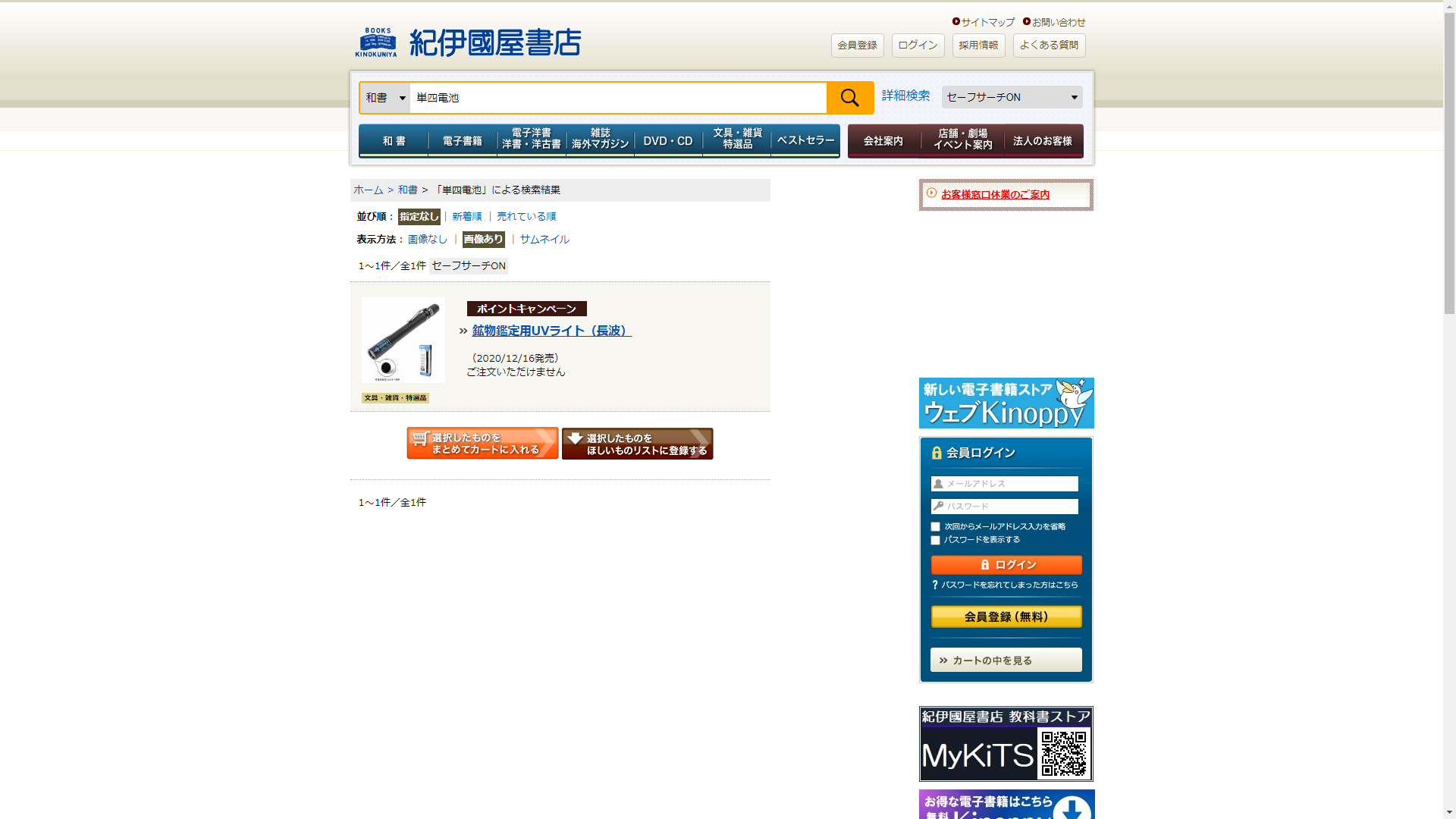単四電池は紀伊國屋書店で買える!