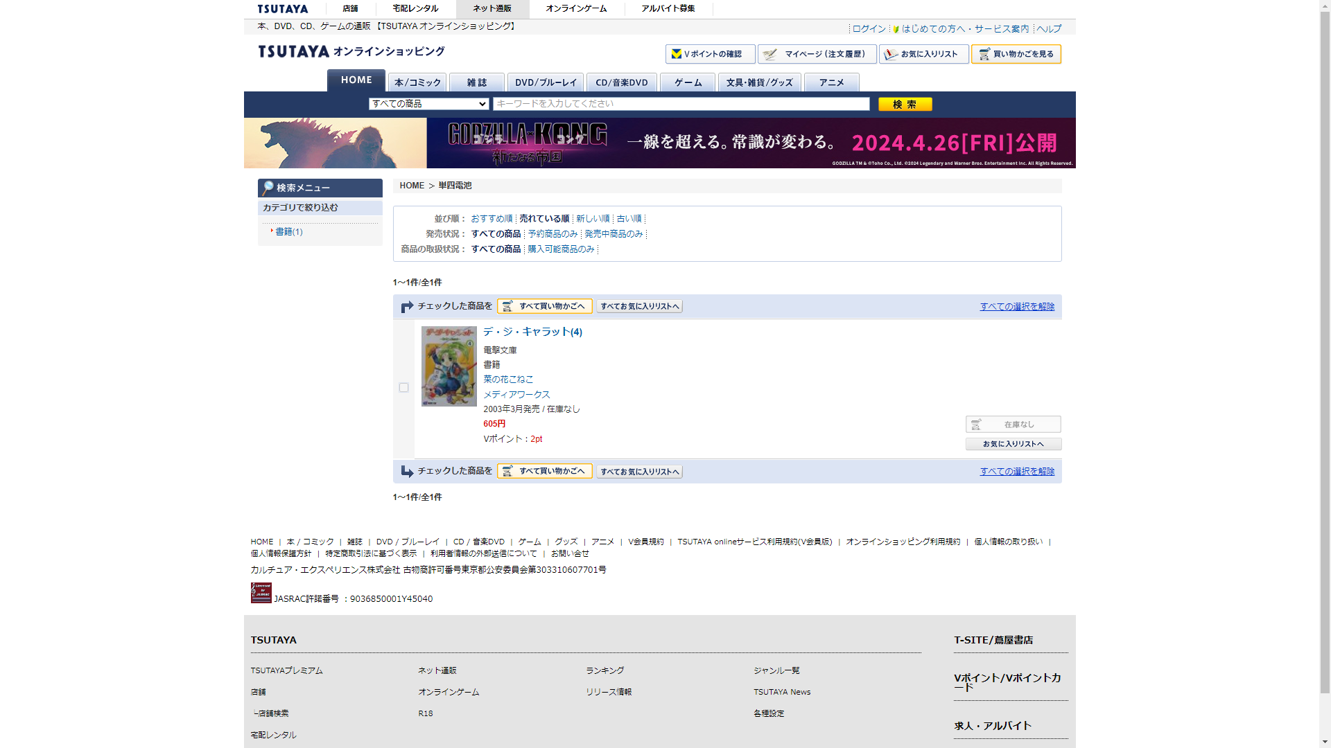 お調べしたところ現在、蔦屋書店では単四電池の関連する商品が販売されています。
