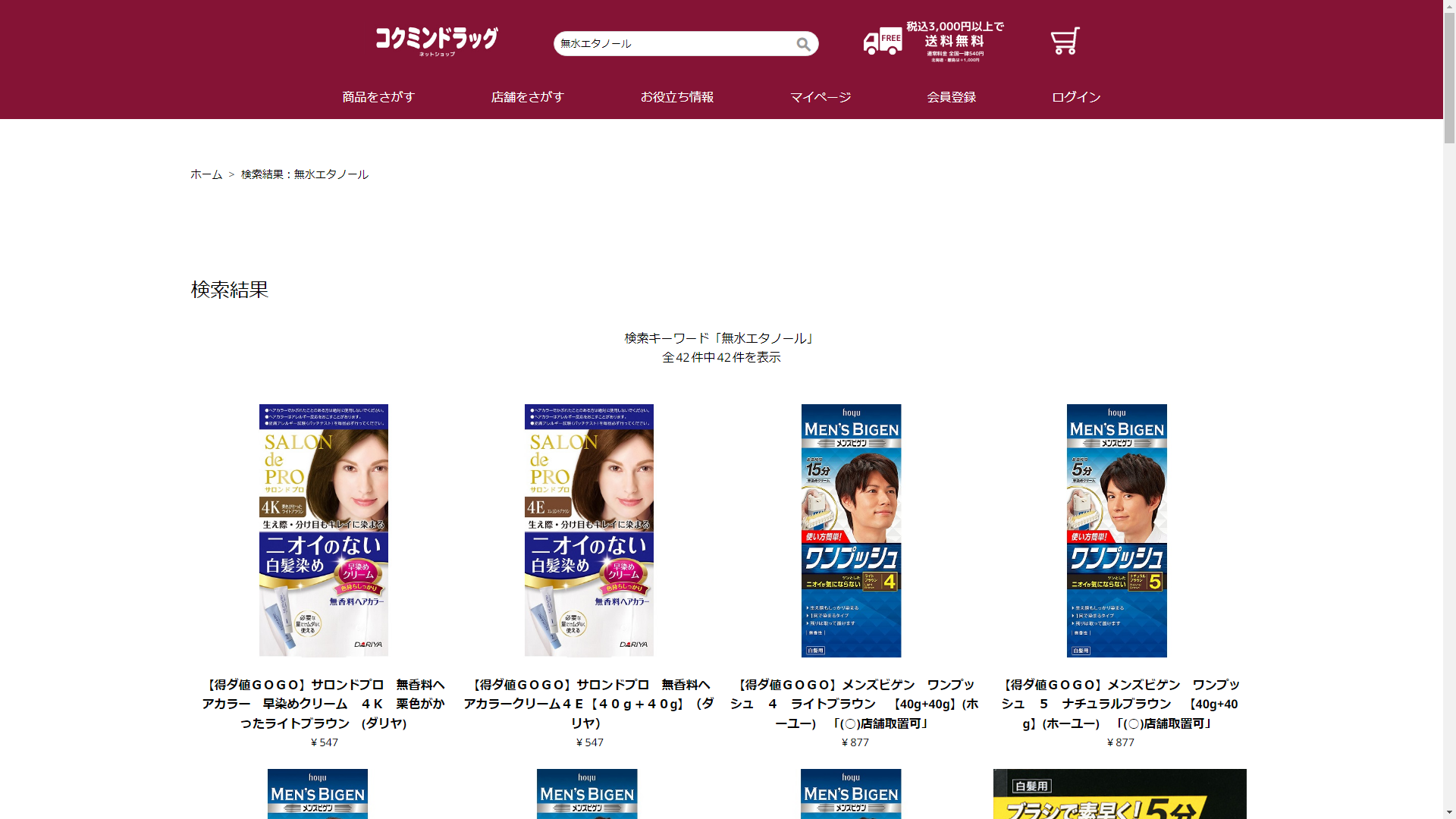 お調べしたところ現在、コクミンドラッグでは無水エタノールの関連する商品が販売されています。