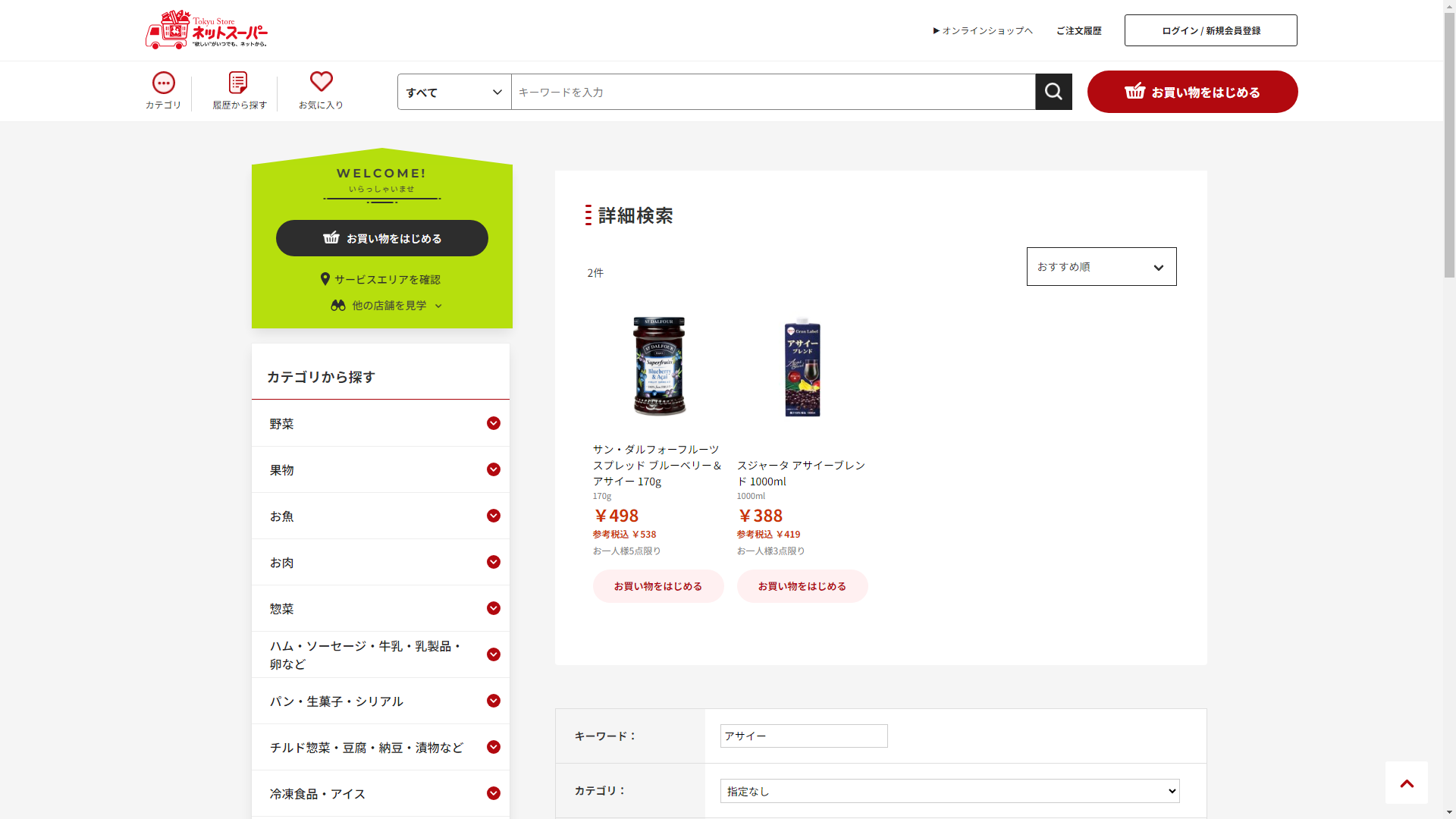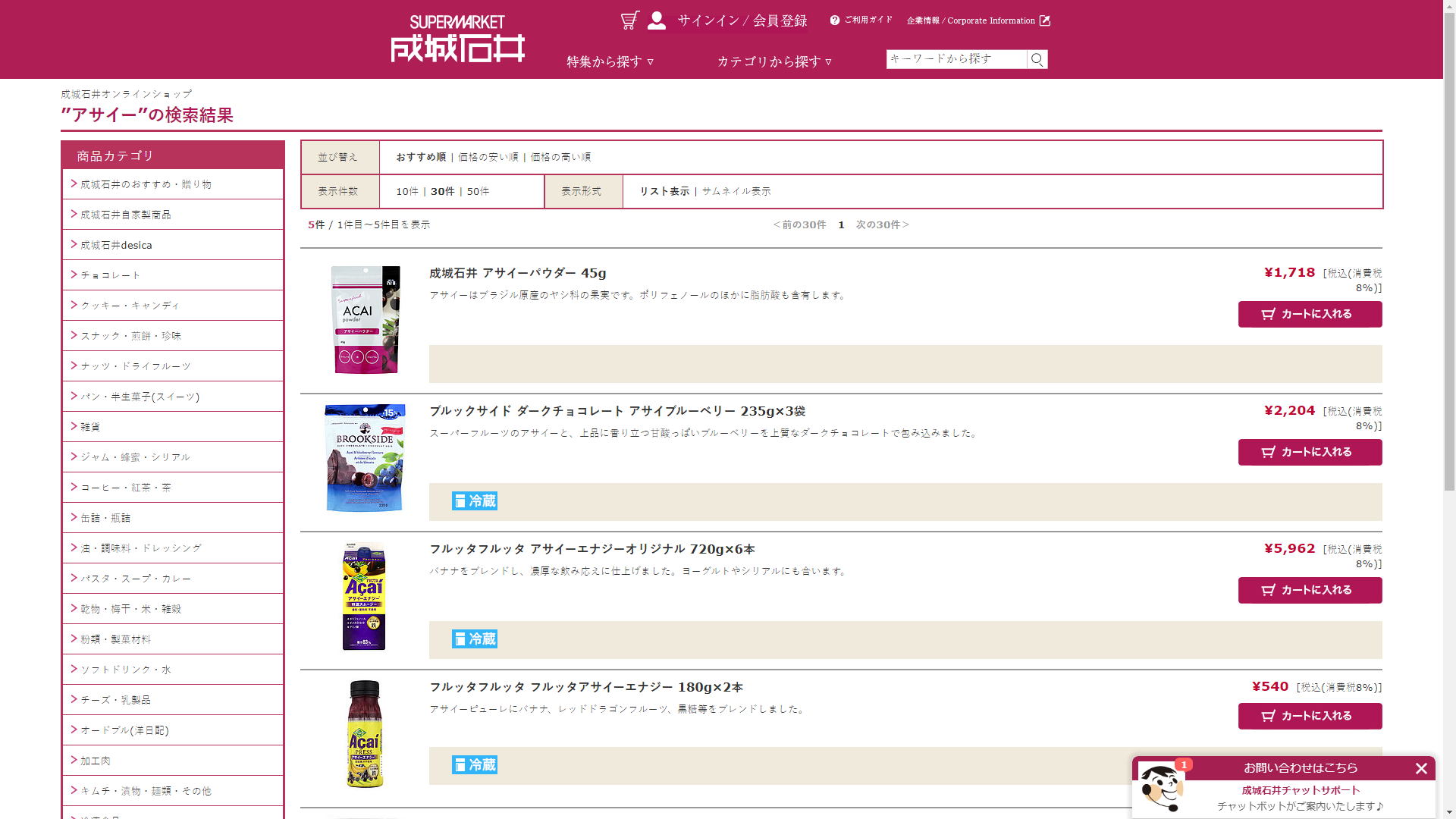 お調べしたところ現在、成城石井公式オンラインショップではアサイーに関連する商品を買うことが可能です。