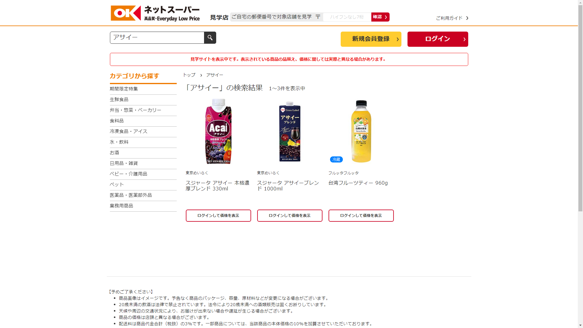 アサイーはオーケーネットスーパーで販売されています