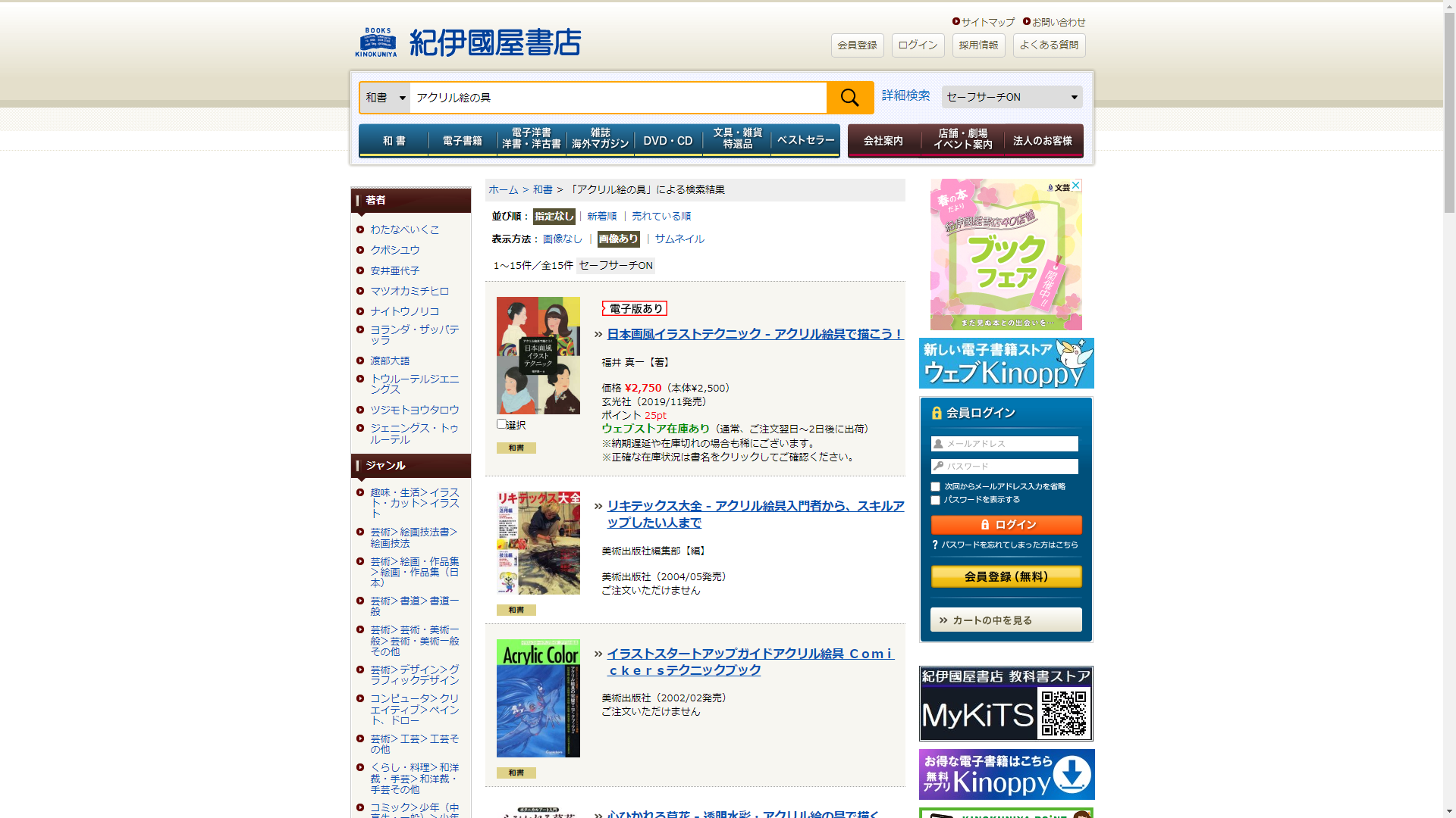 お調べしたところ現在、紀伊國屋書店ではアクリル絵の具に関連する商品を買うことが可能です。