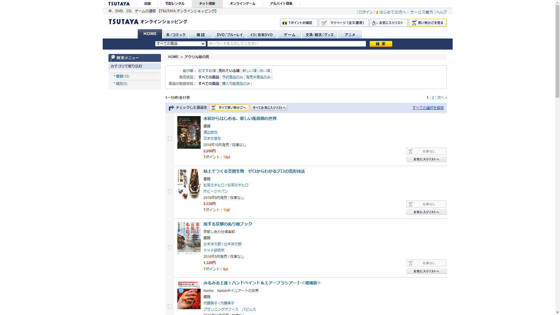 お調べしたところ現在、蔦屋書店ではアクリル絵の具の関連する商品が販売されています。
