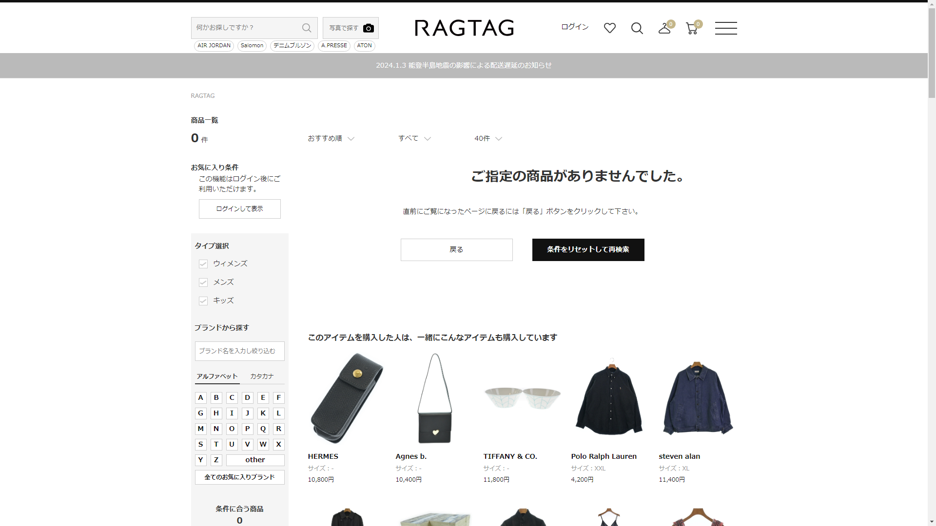 お調べしたところ残念ながら現在ではRAGTAGにアニエスベーtシャツは販売されていませんでした。