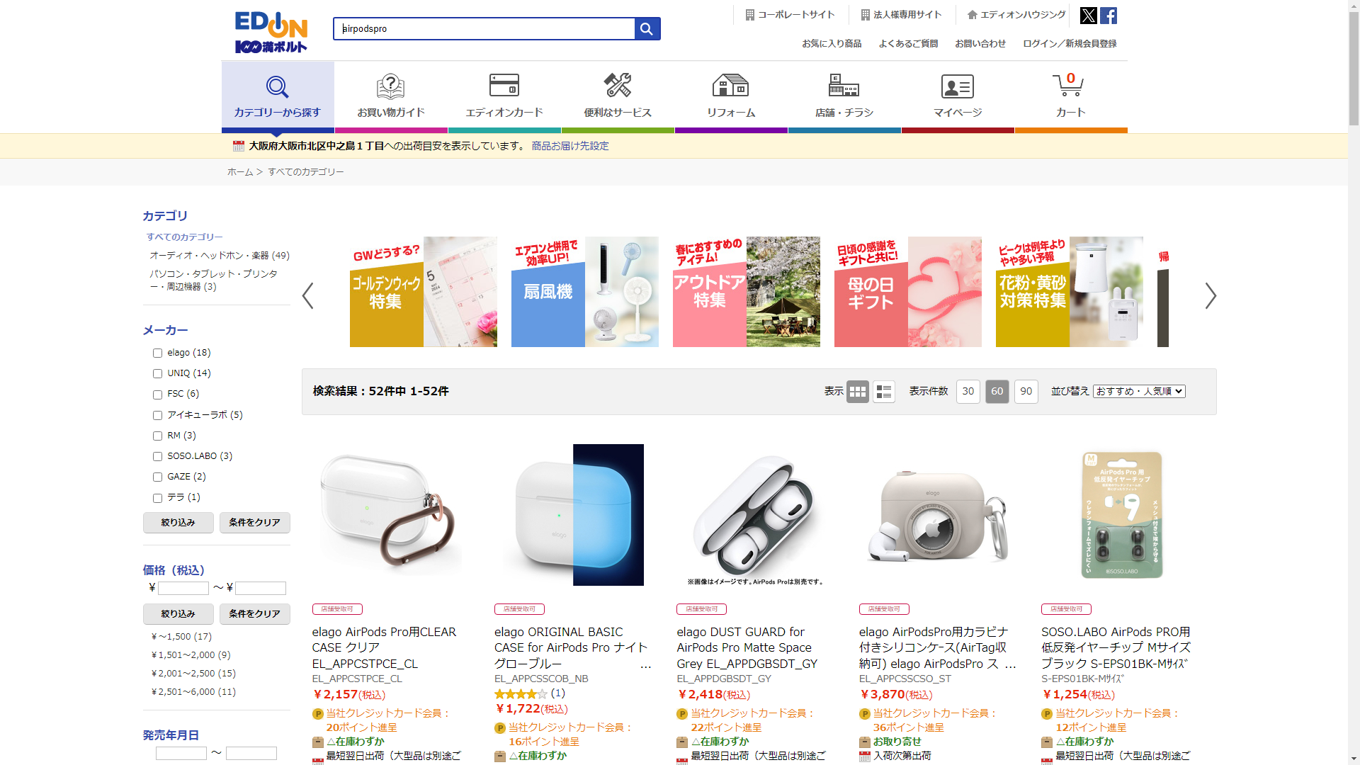 お調べしたところ現在、EDIONではairpodsproに関連する商品が販売されています。