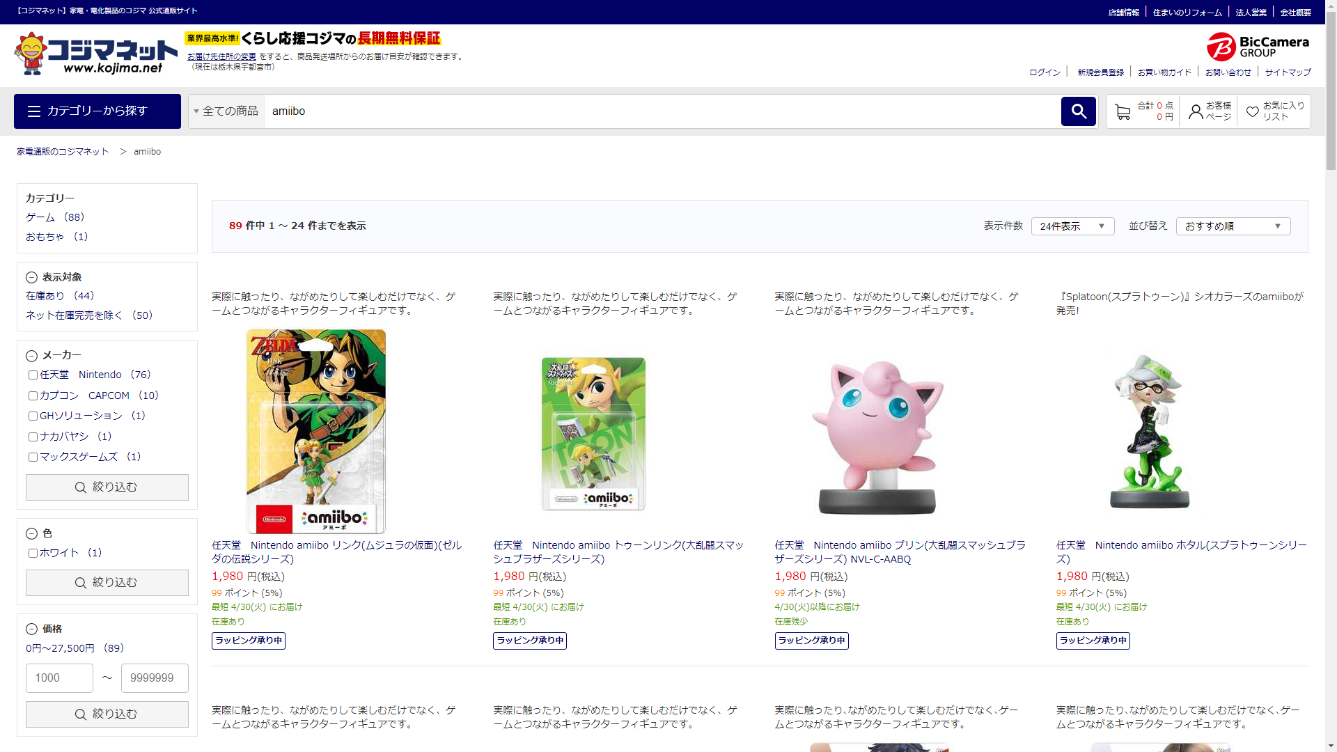 お調べしたところ現在、家電・電化製品のコジマではamiiboの関連する商品が販売されています。