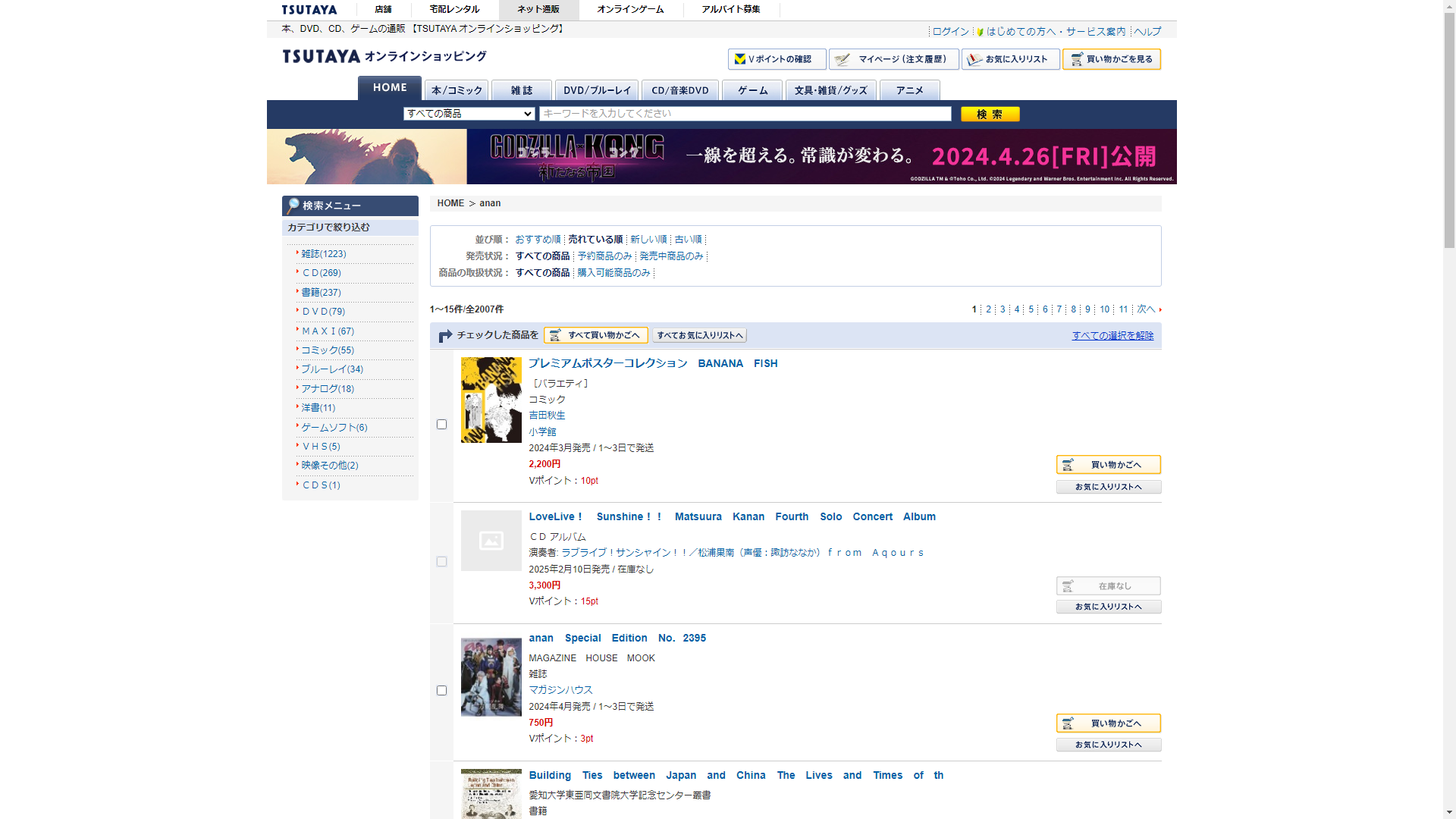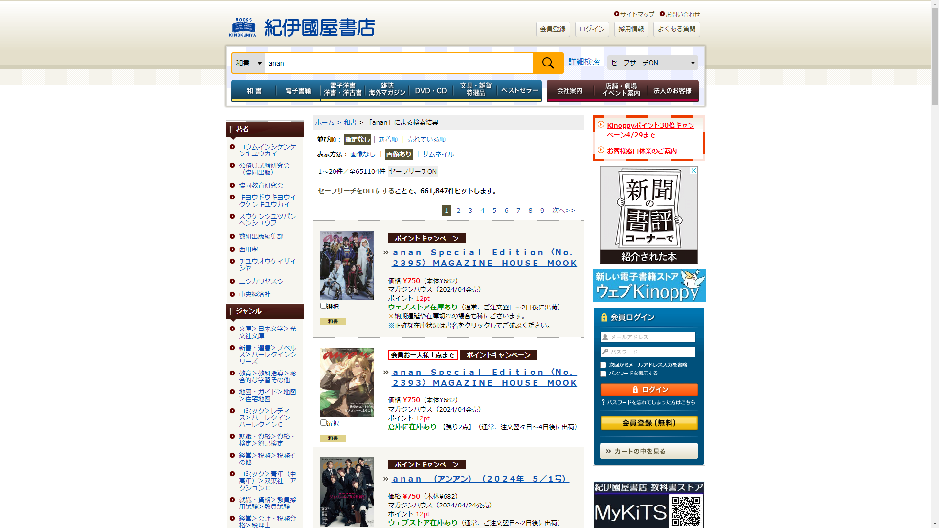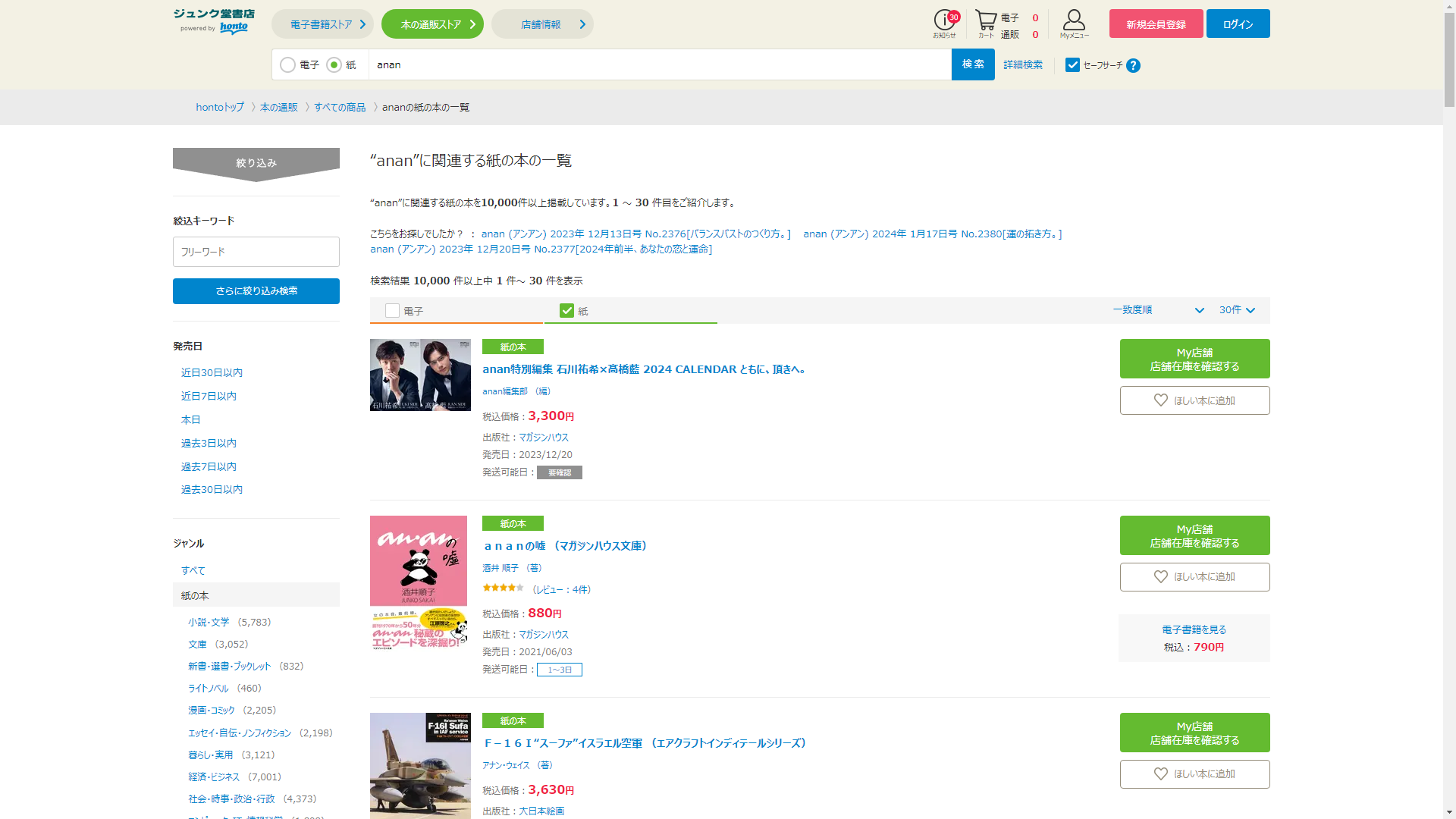 お調べしたところ現在、ジュンク堂書店ではananの関連する商品が販売されています。