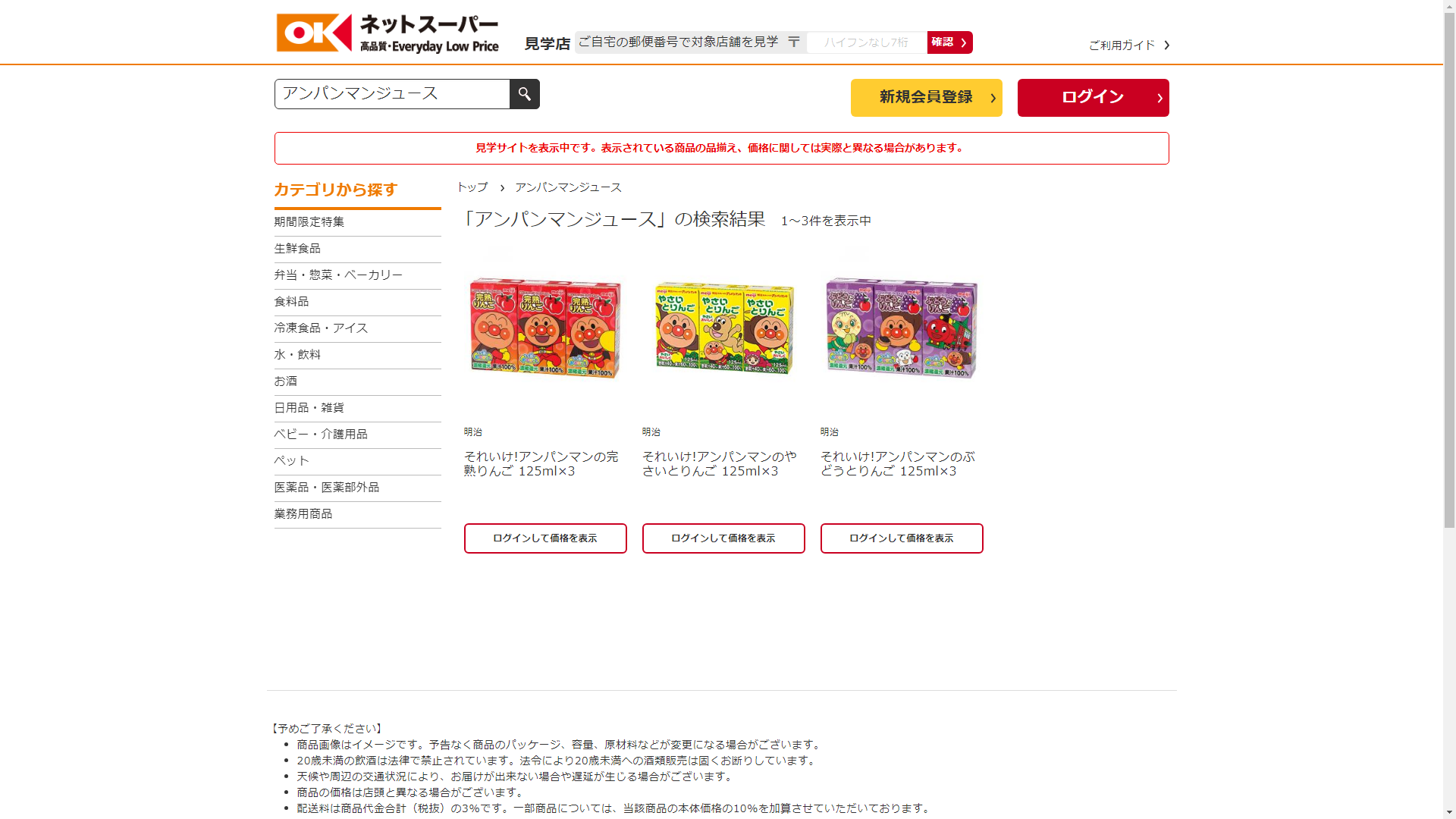 アンパンマンジュースはオーケーネットスーパーで販売されています