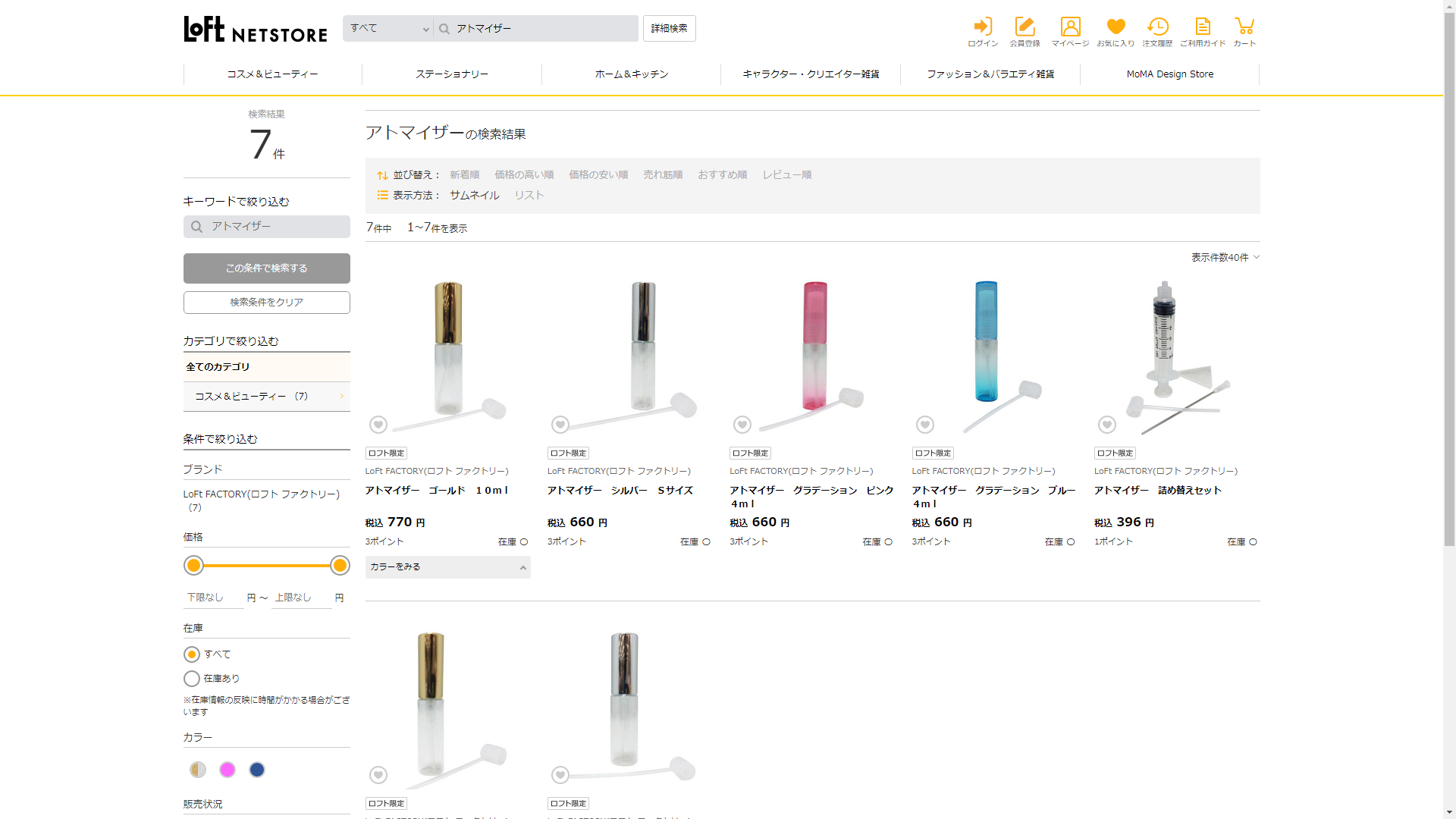 アトマイザーはロフトで販売されています