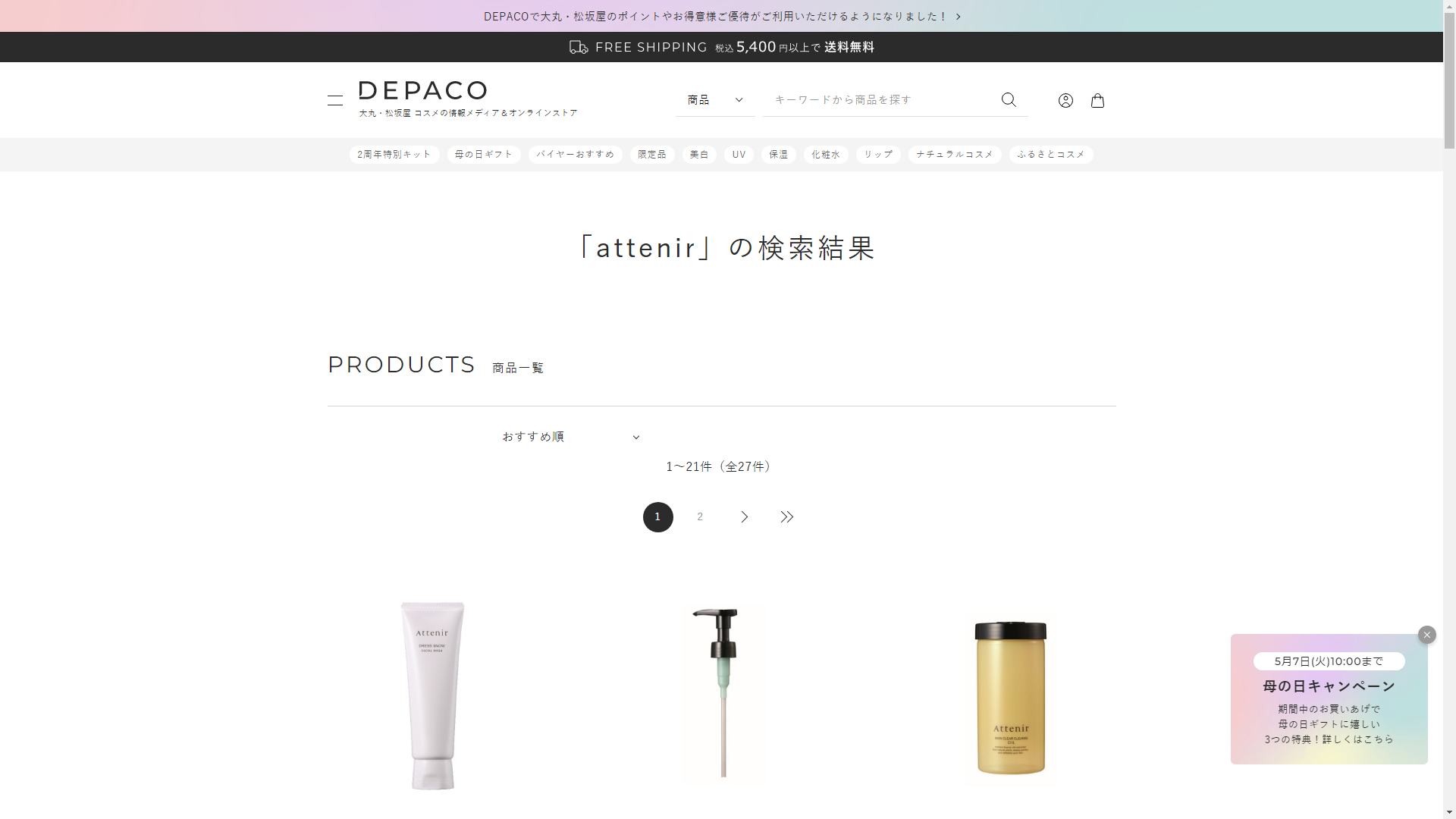 attenirは大丸松坂屋で販売されています