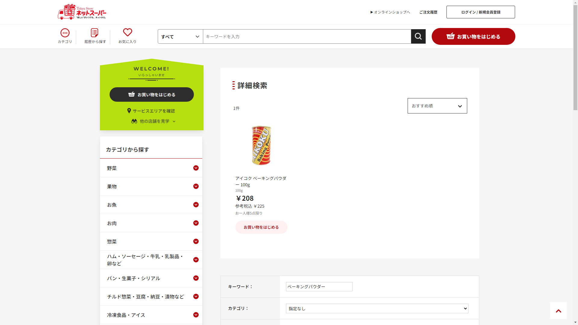 お調べしたところ現在OKネットスーパーではベーキングパウダーに関連する商品が販売されています。