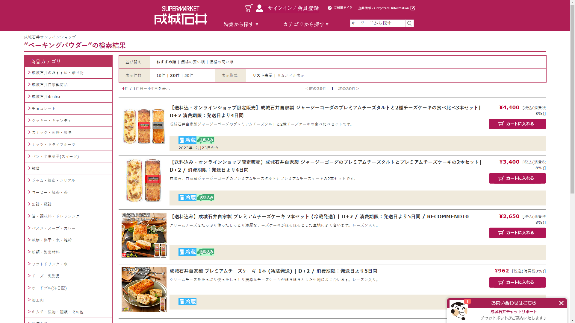お調べしたところ現在、成城石井公式オンラインショップではベーキングパウダーに関連する商品を買うことが可能です。