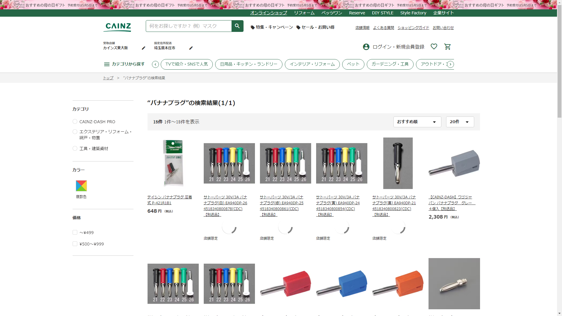 お調べしたところ現在、CAINZではバナナプラグの関連する商品が販売されています。