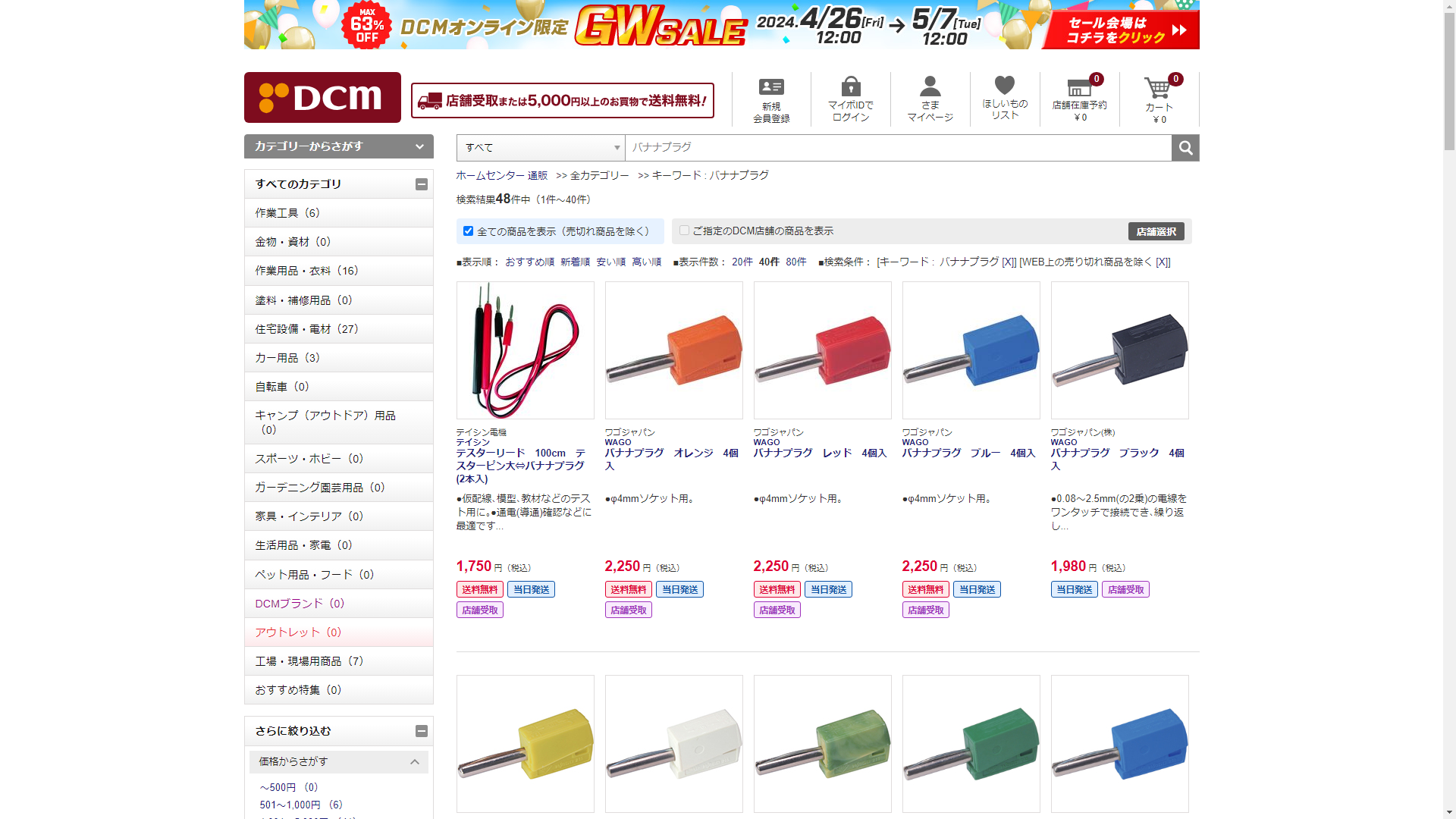 お調べしたところ現在、DCMではバナナプラグに関連する商品が販売されています。