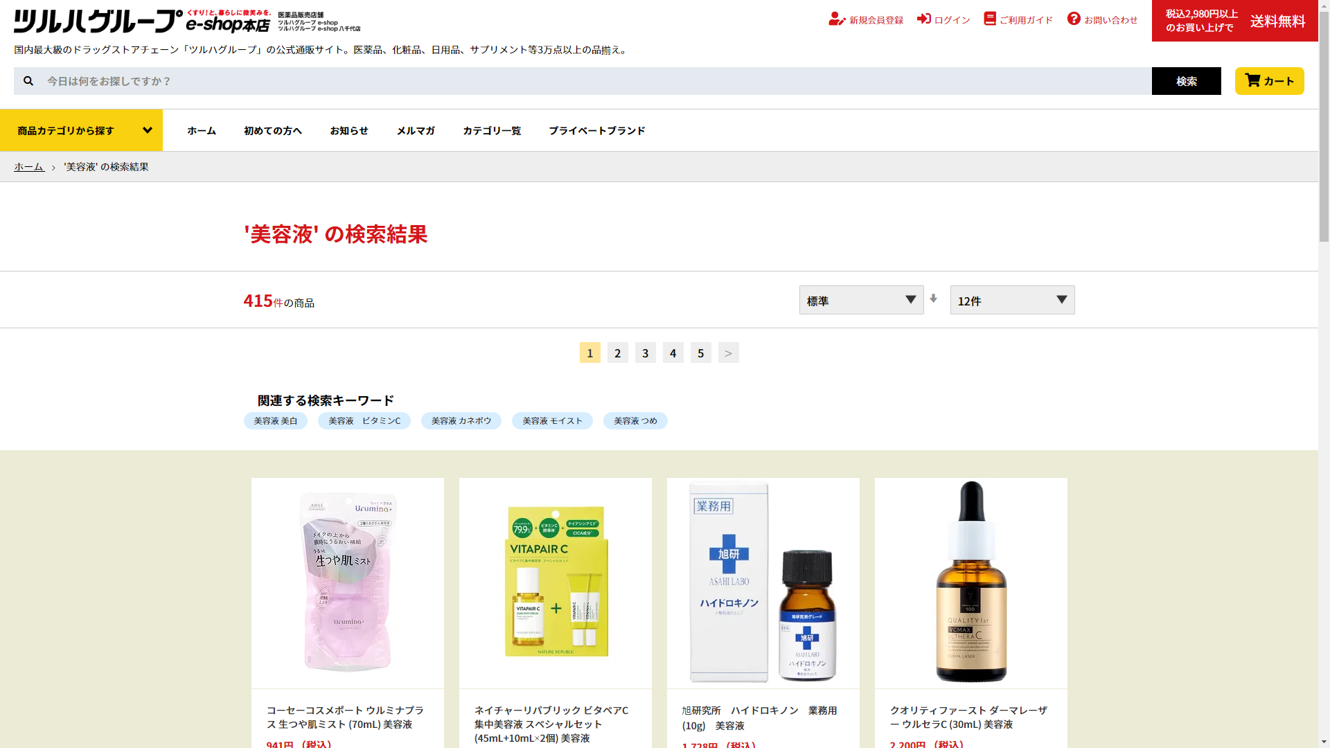 お調べしたところ現在、ツルハドラッグでは美容液 に関連する商品を買うことが可能です。