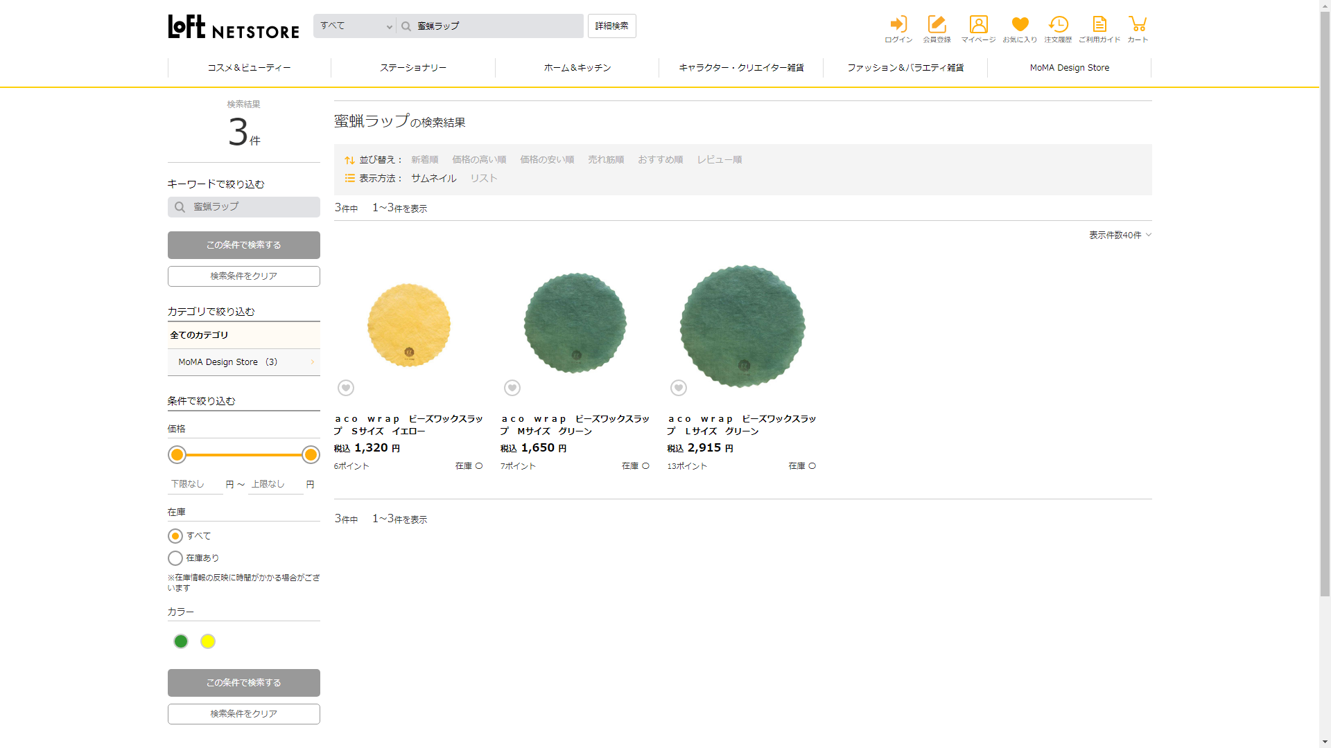 お調べしたところ現在、ロフトでは蜜蝋ラップに関連する商品が販売されています。