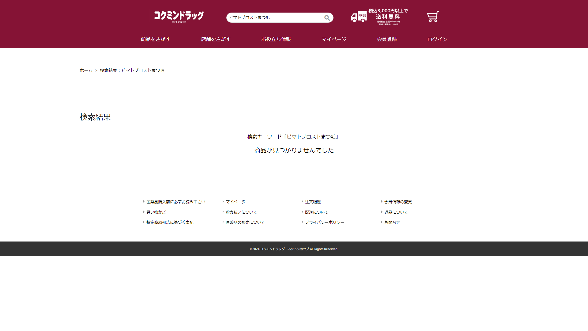 ビマトプロストまつ毛はコクミンドラッグには売っていません