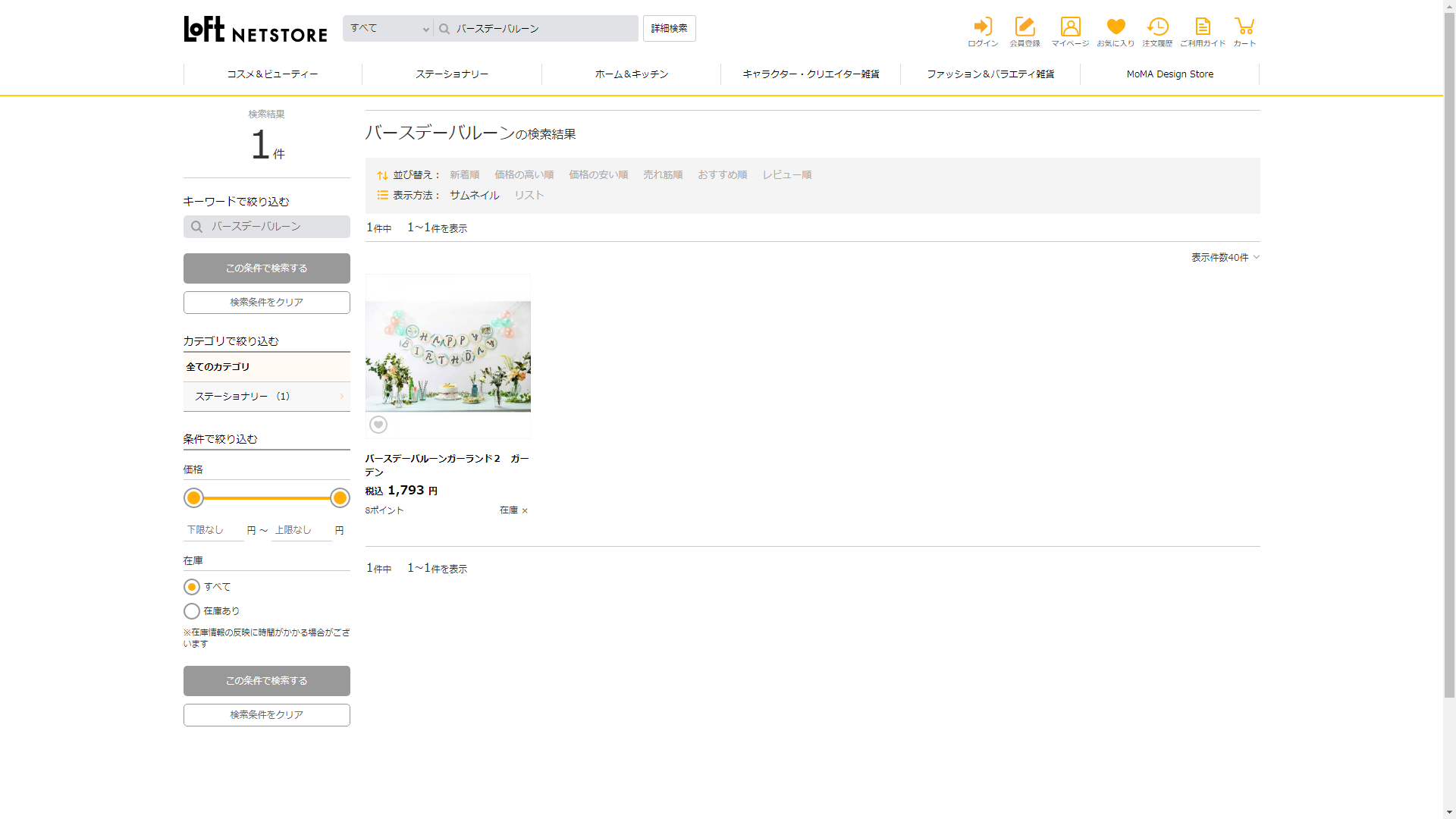 お調べしたところ現在、ロフトではバースデーバルーンに関連する商品が販売されています。