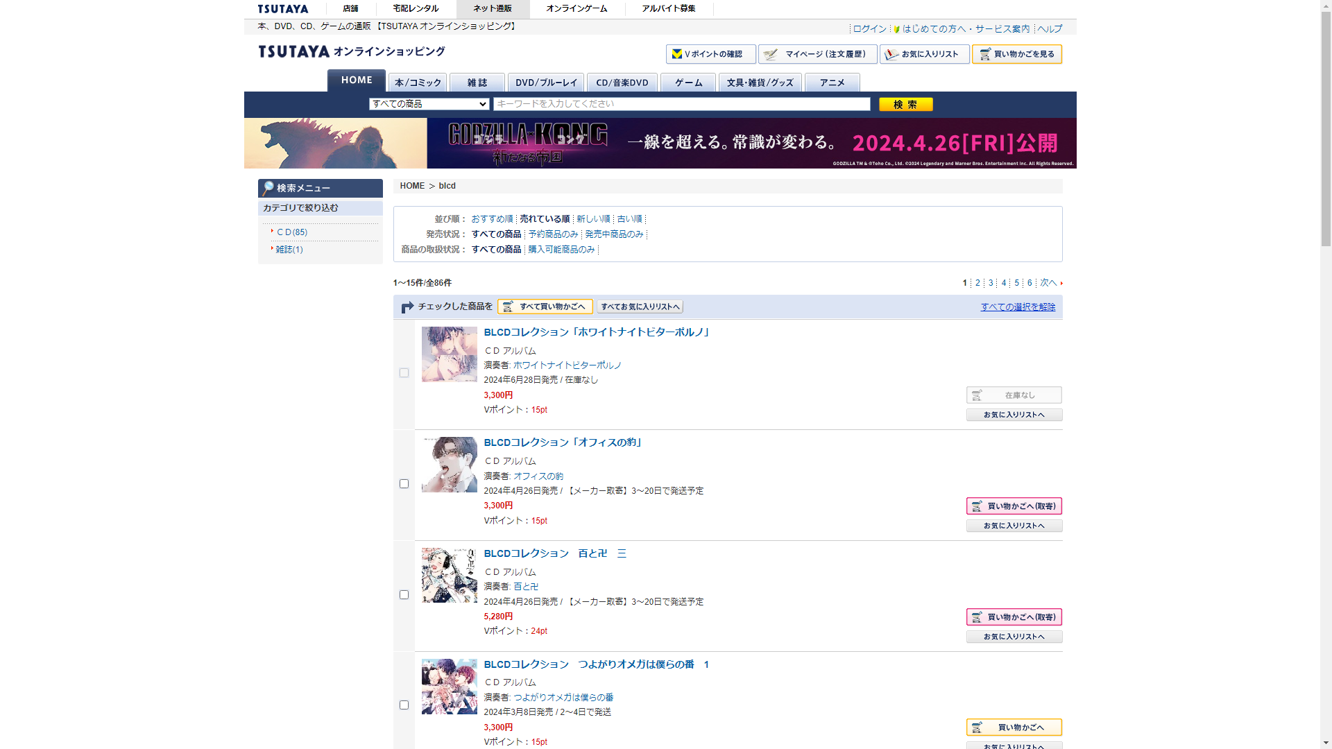 お調べしたところ現在、蔦屋書店ではblcdに関連する商品が販売されています。