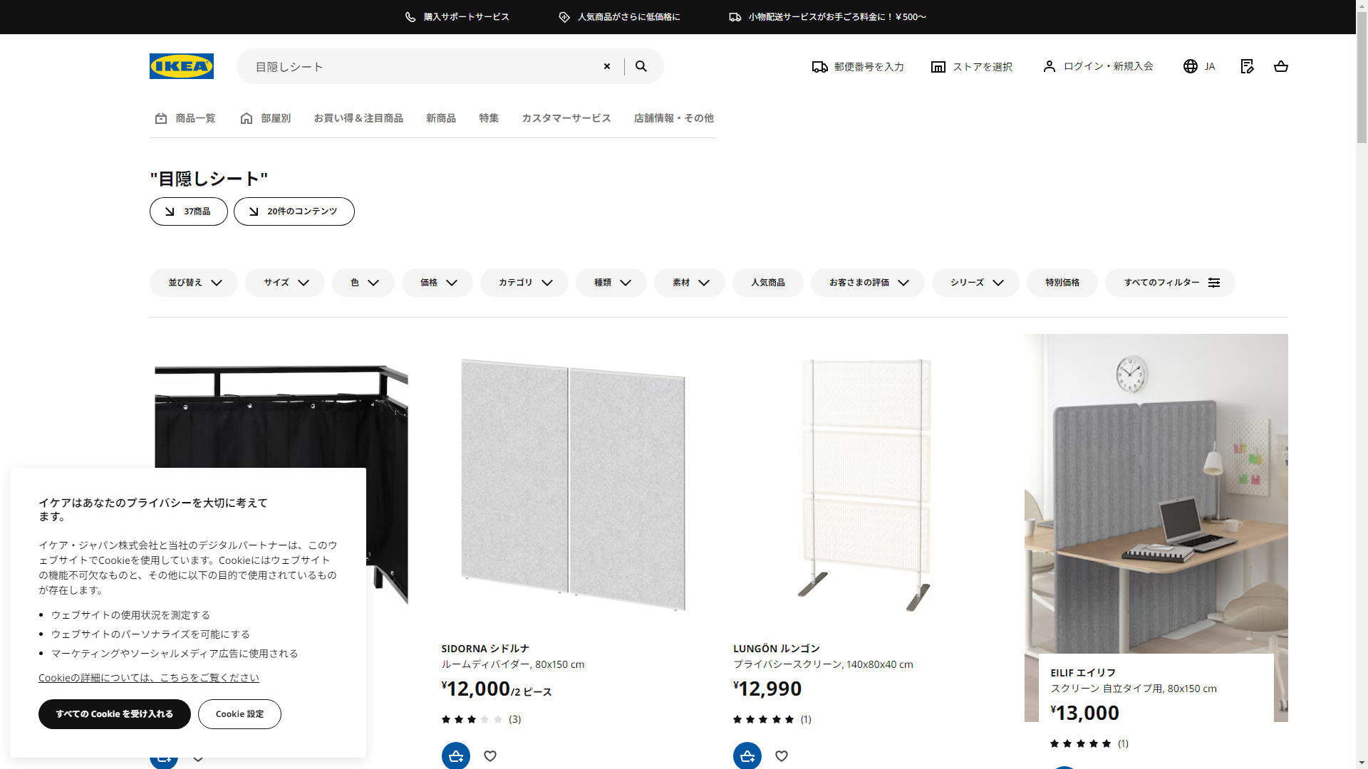 お調べしたところ現在、IKEAでは目隠しシートに関連する商品を買うことが可能です。
