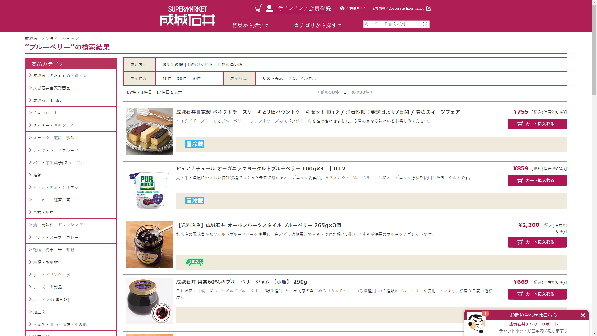 お調べしたところ現在、成城石井公式オンラインショップではブルーベリーに関連する商品を買うことが可能です。