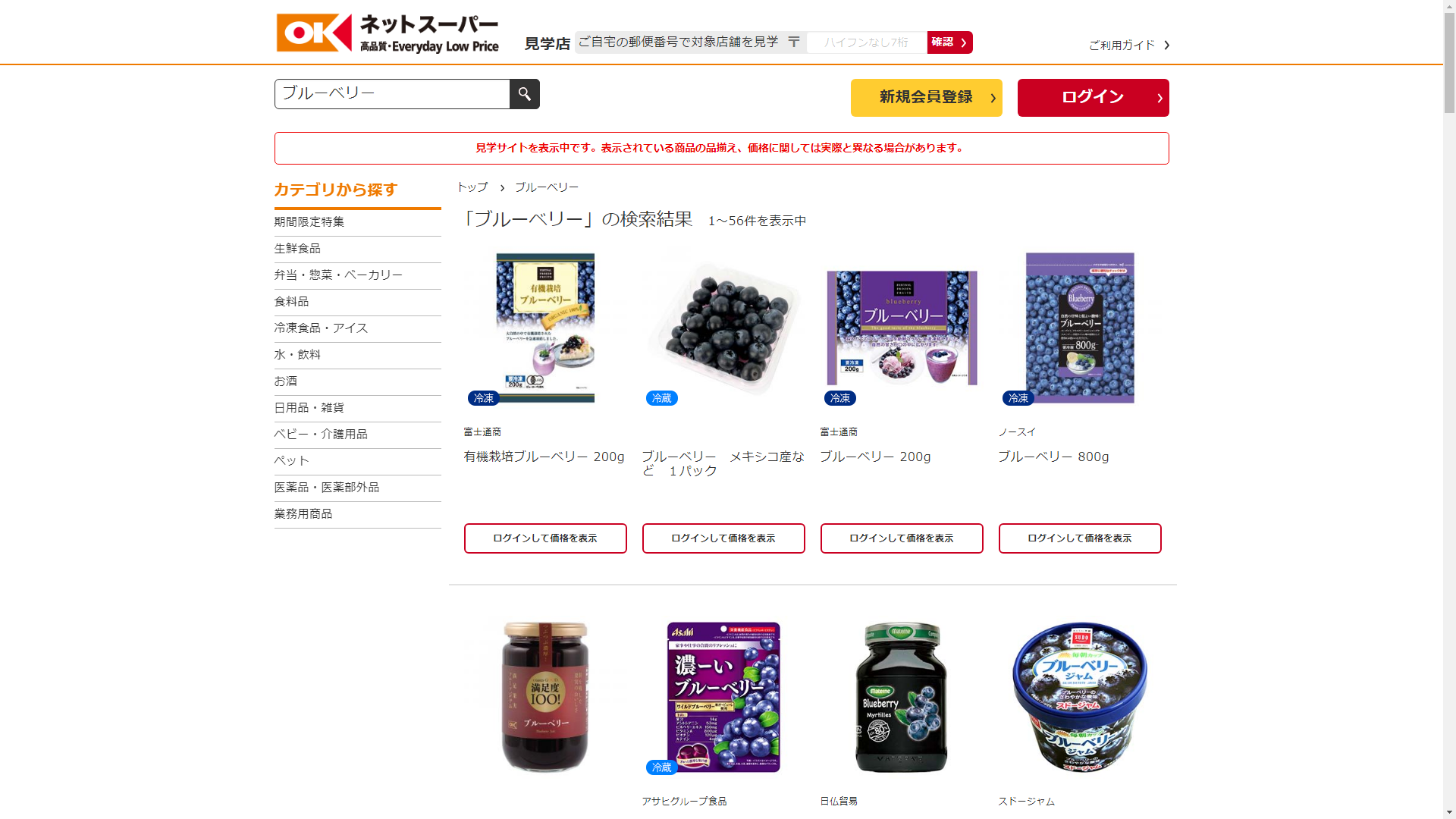お調べしたところ現在OKネットスーパーではブルーベリーに関連する商品が販売されています。