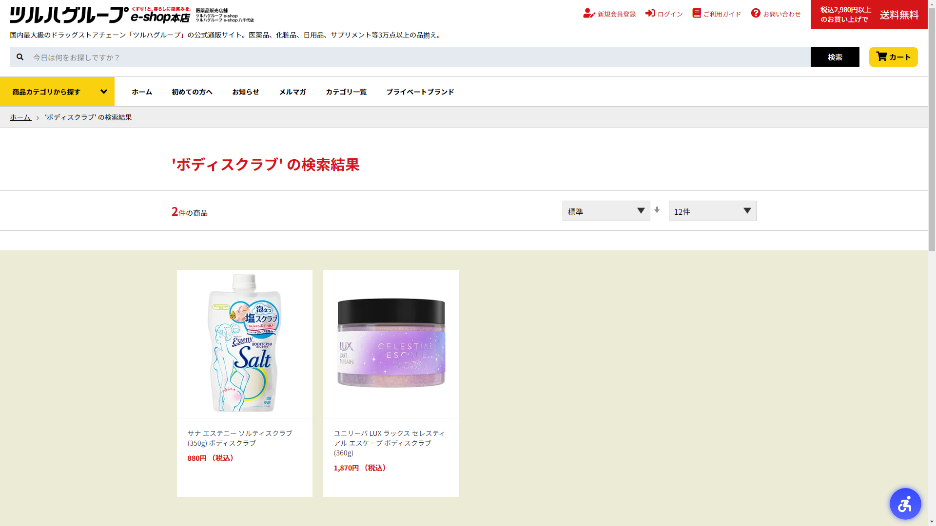 お調べしたところ現在、ツルハドラッグではボディスクラブに関連する商品を買うことが可能です。
