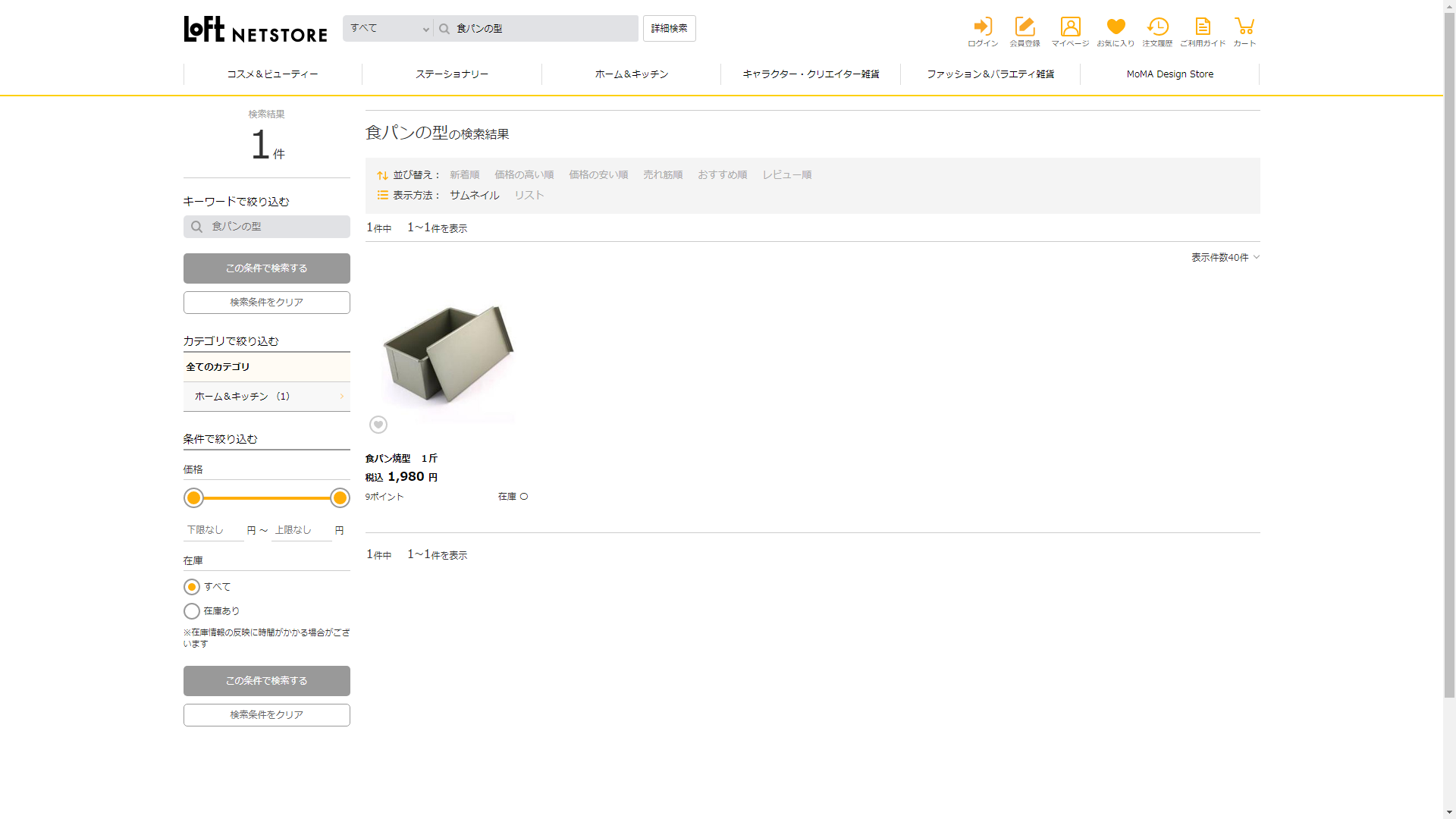 お調べしたところ現在、ロフトでは食パンの型に関連する商品が販売されています。