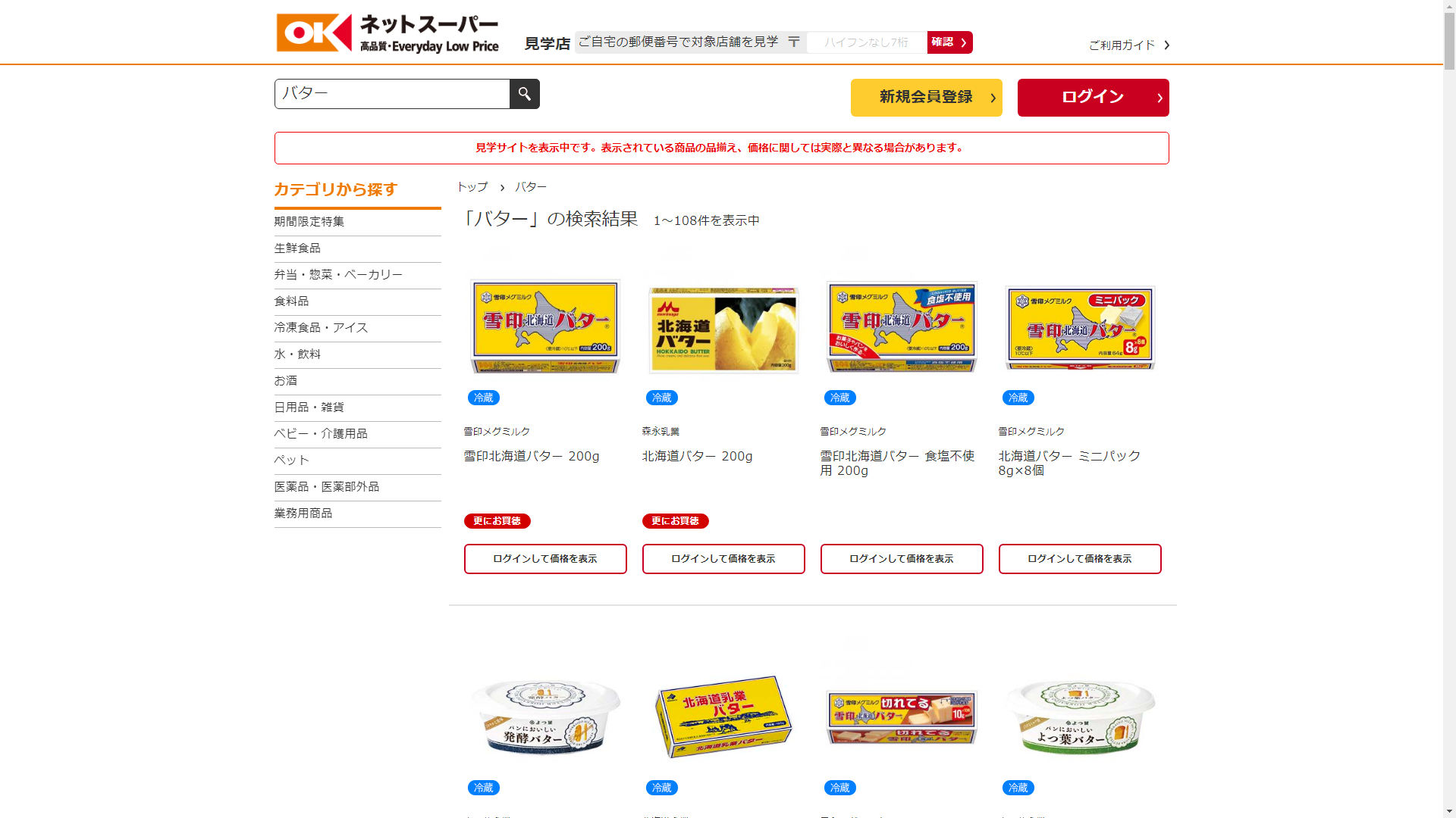 お調べしたところ現在OKネットスーパーではバターに関連する商品が販売されています。