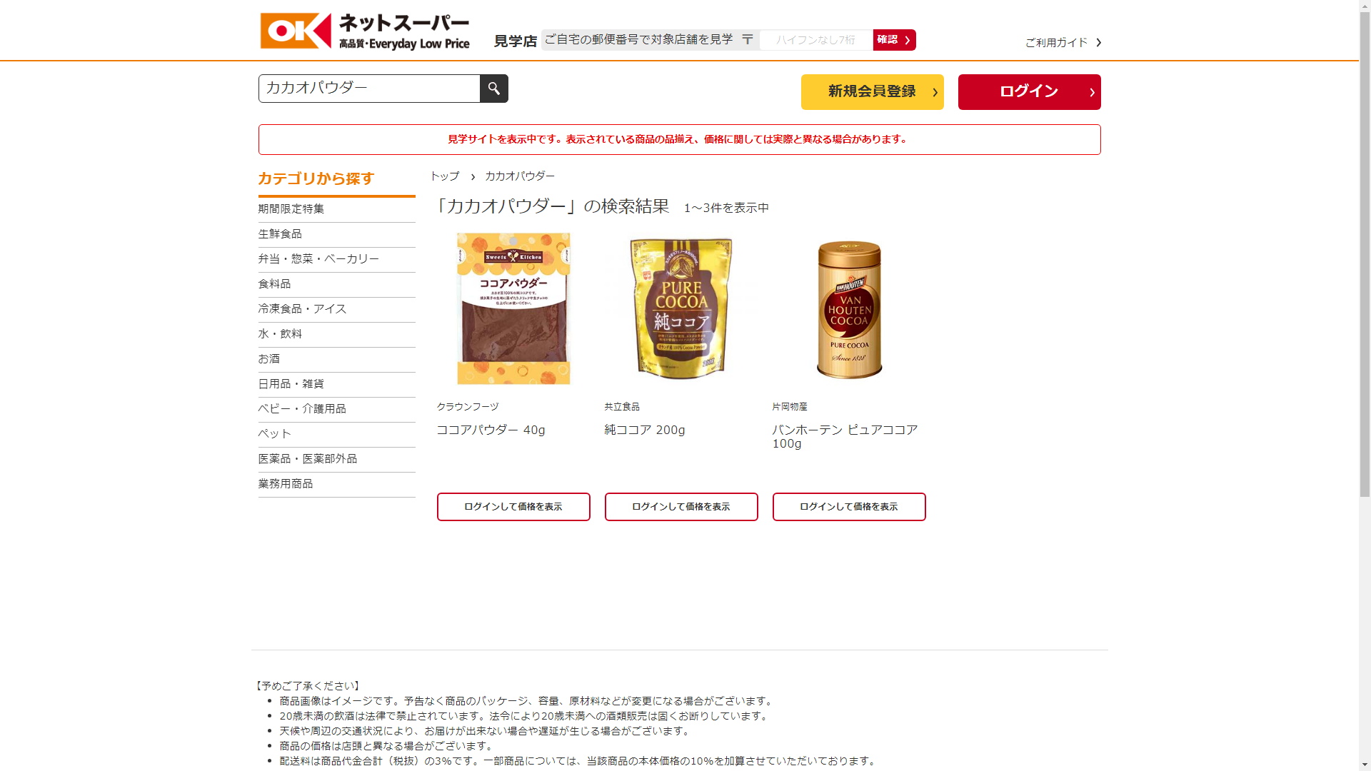 カカオパウダーはオーケーネットスーパーで販売されています