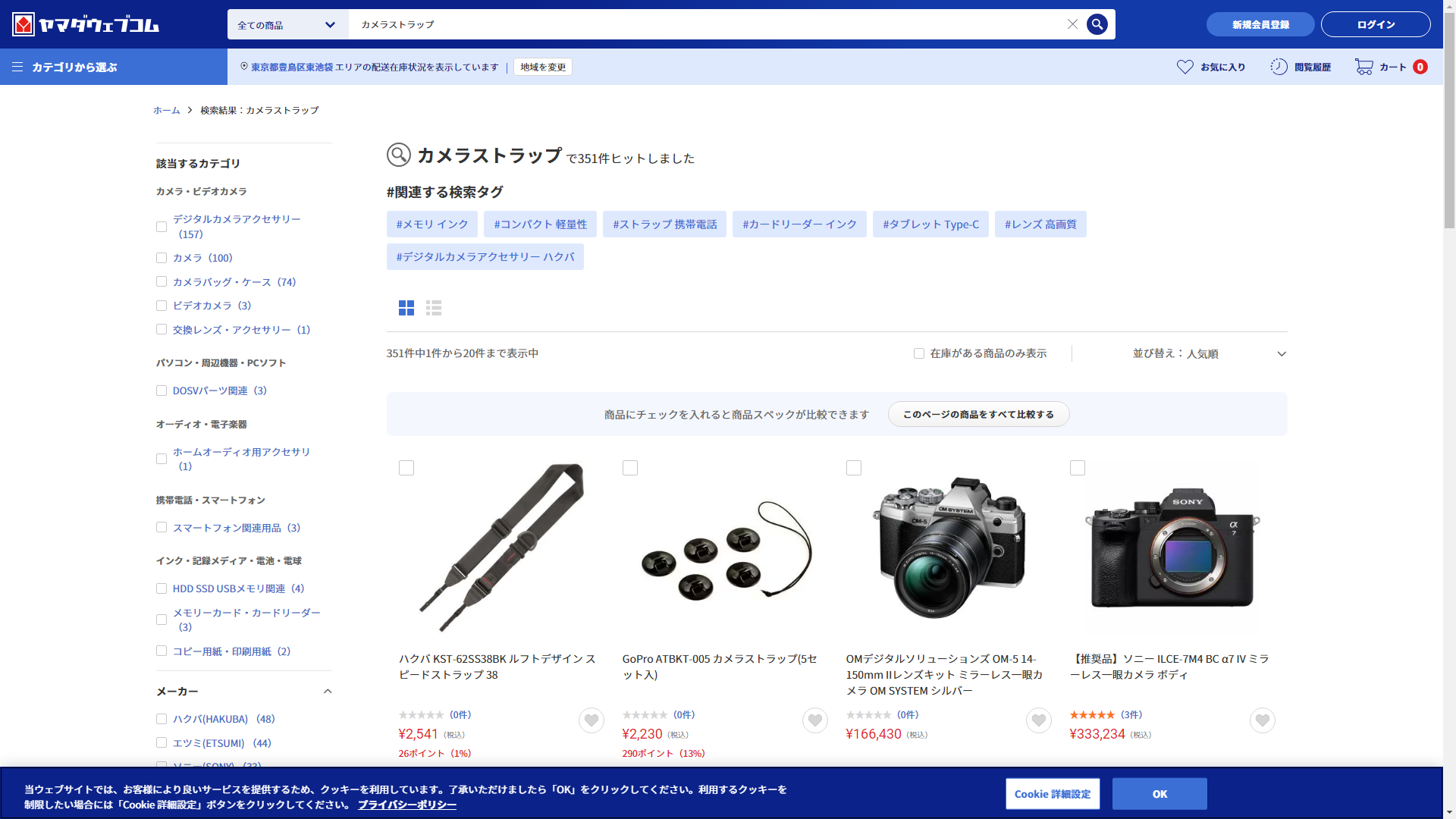 お調べしたところ現在、ヤマダデンキではカメラストラップに関連する商品を買うことが可能です。