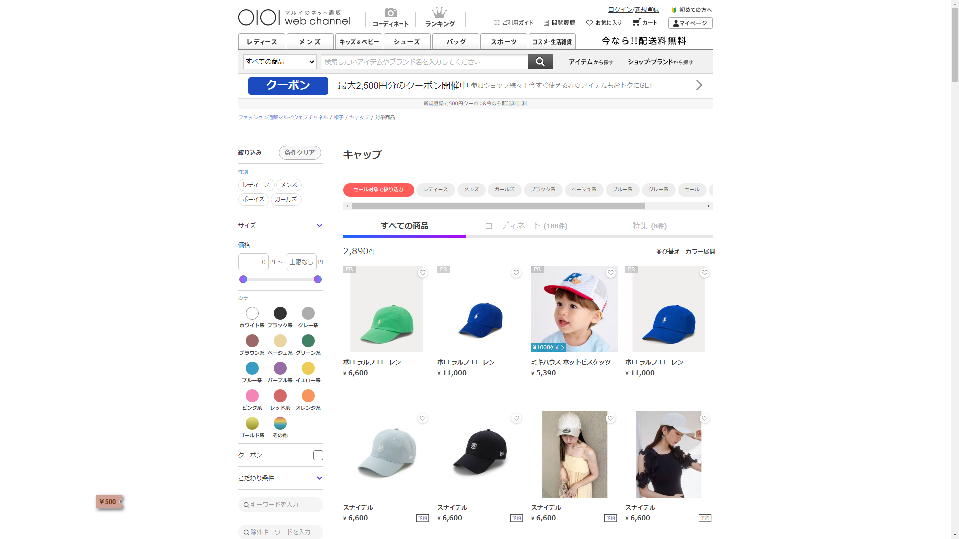 お調べしたところ現在、OIOI(マルイ)ではキャップの関連する商品が販売されています。