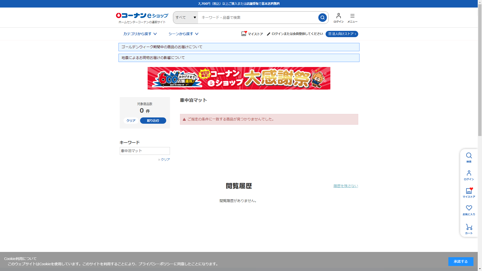 車中泊マットはホームセンターコーナンには売っていない