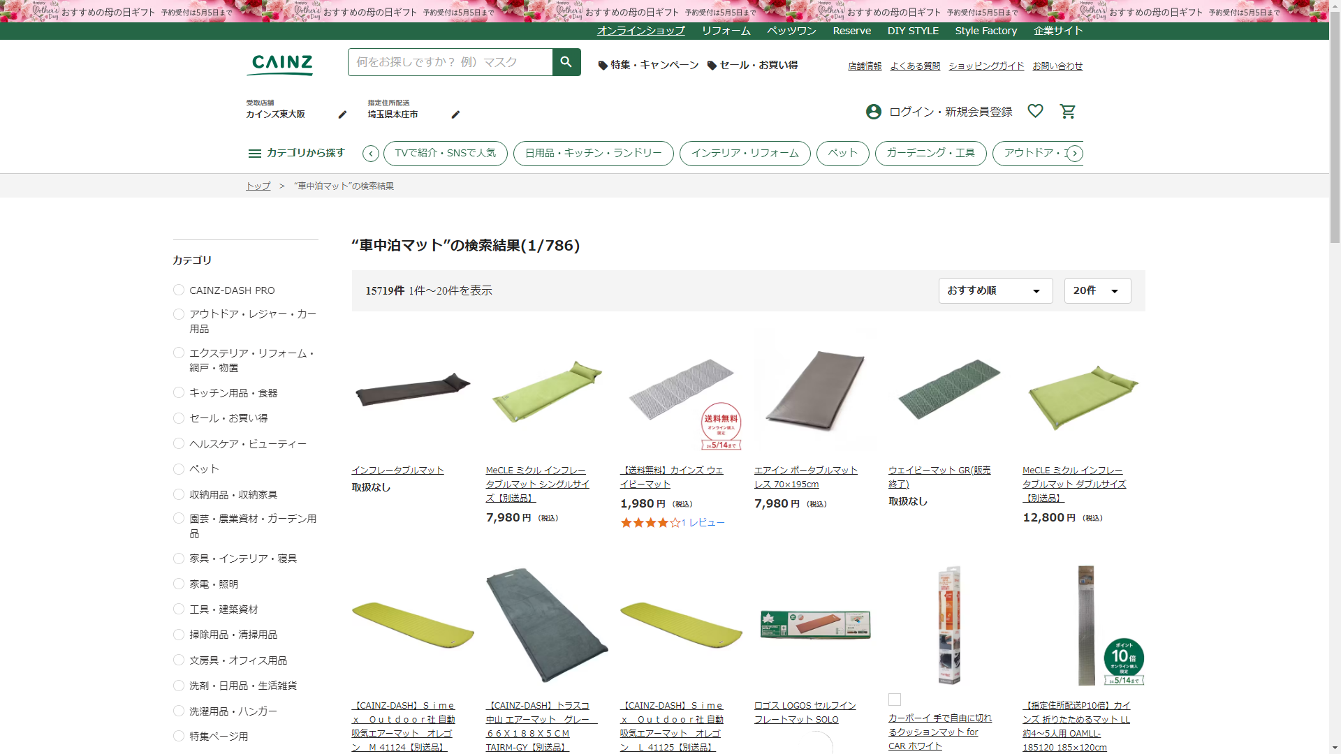 車中泊マットはCAINZに売っています
