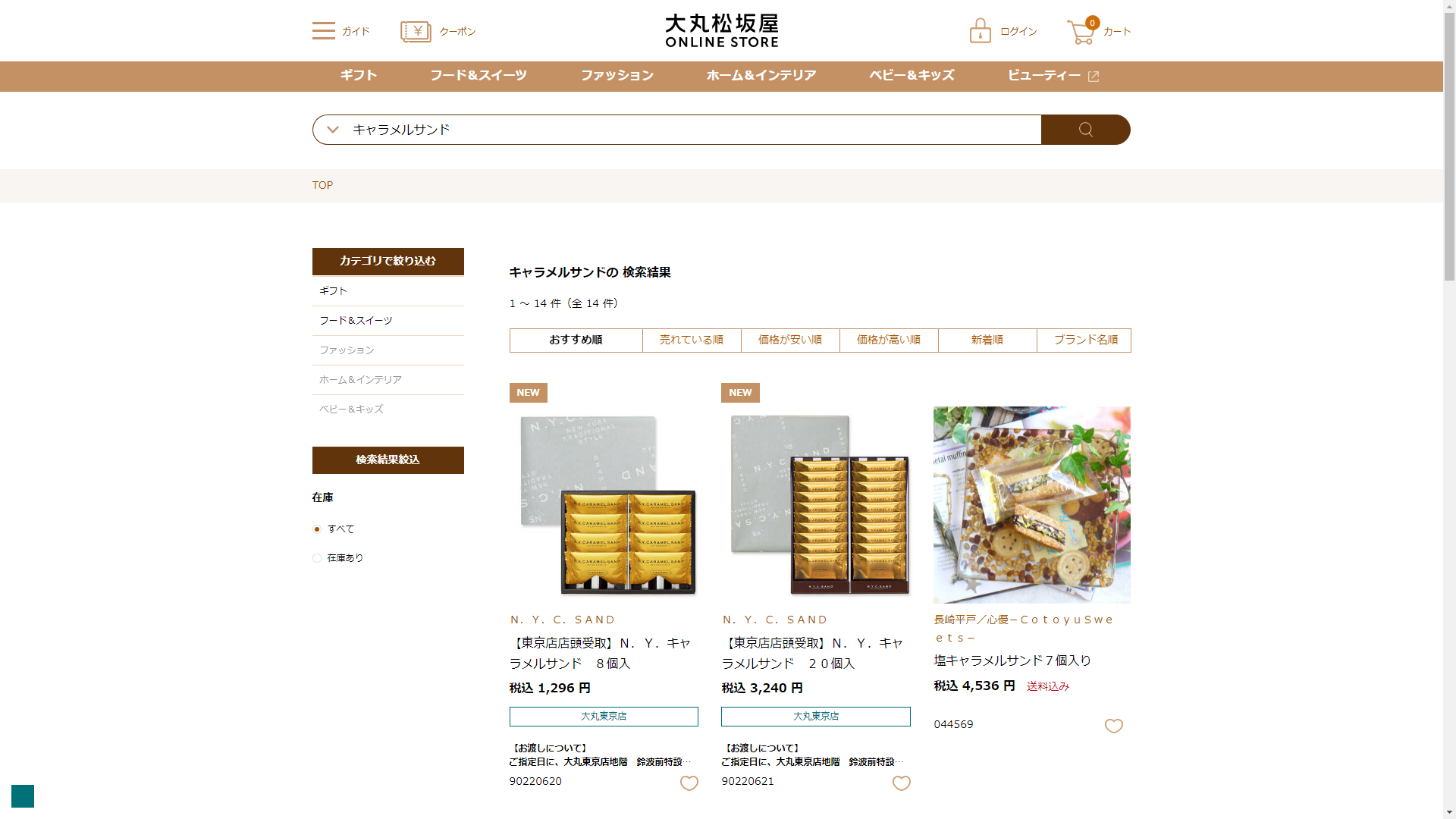 お調べしたところ現在、大丸松坂屋ではキャラメルサンドの関連する商品が販売されています。