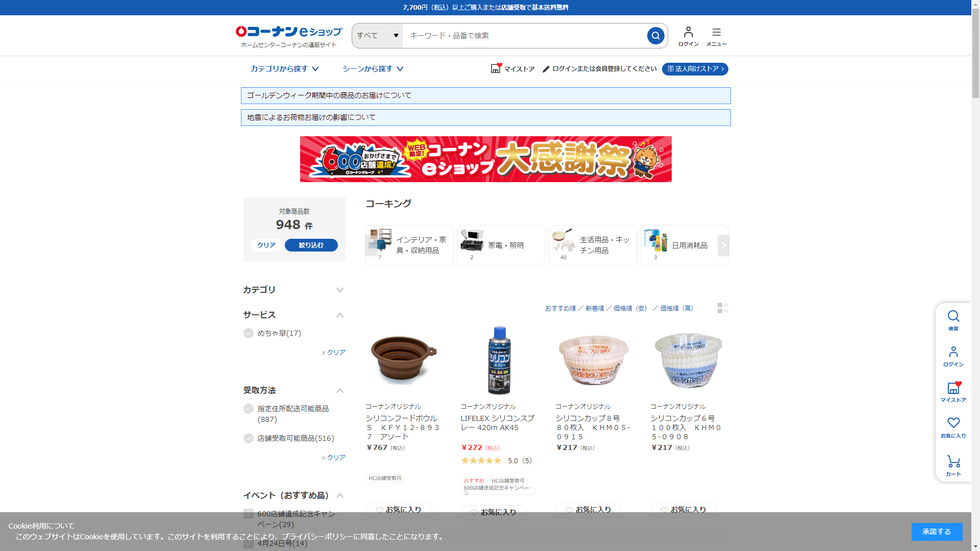 お調べしたところ現在、ホームセンターコーナンではコーキングに関連する商品を買うことが可能です。