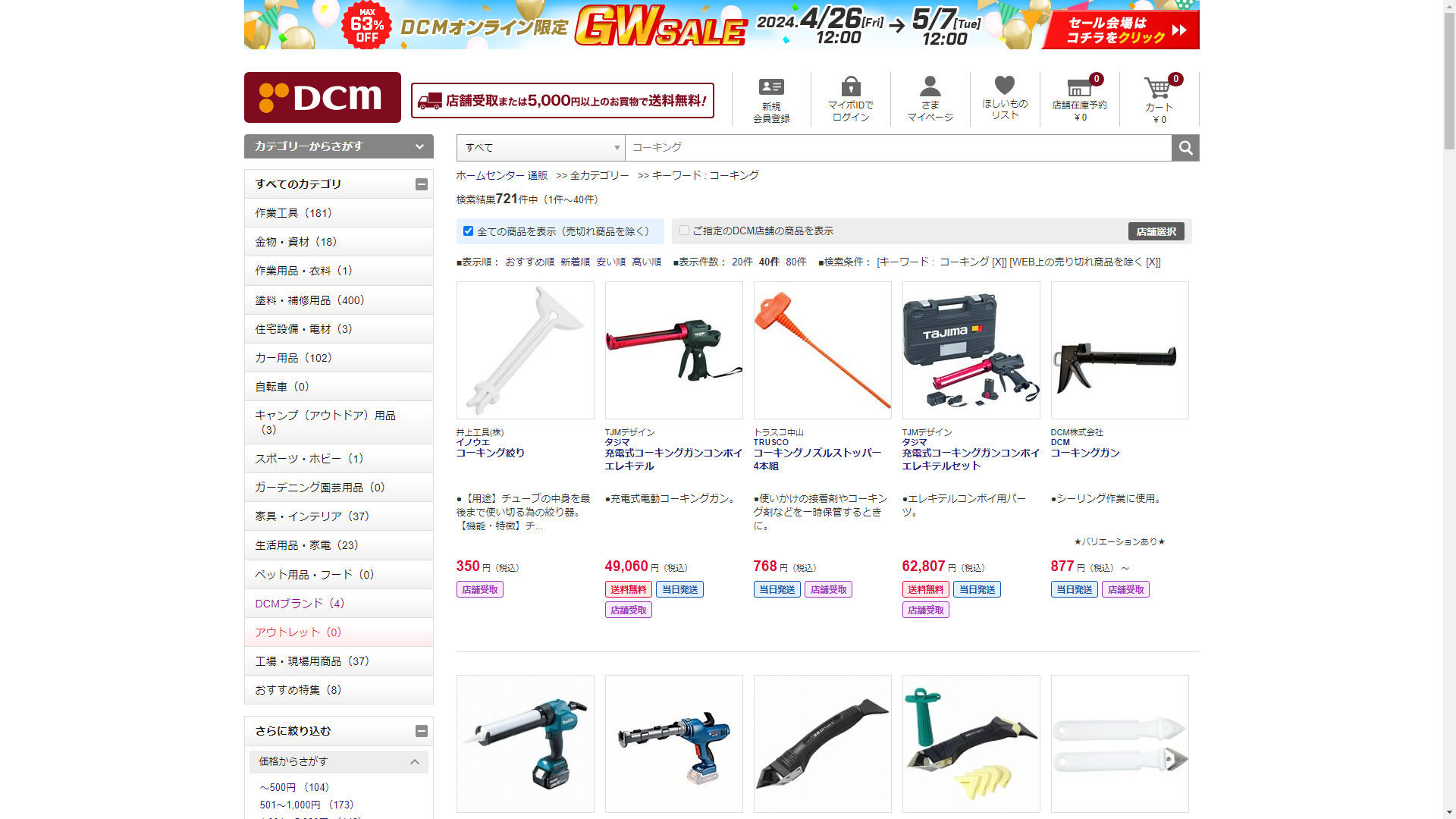 お調べしたところ現在、DCMではコーキングに関連する商品が販売されています。