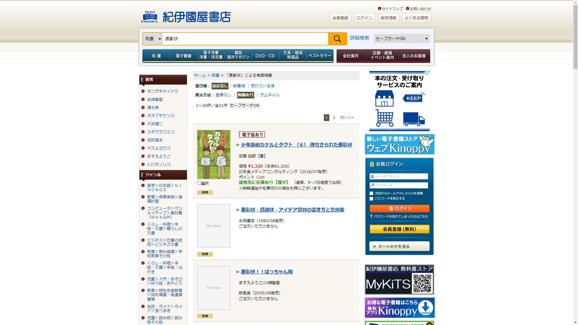 お調べしたところ現在、紀伊國屋書店では表彰状に関連する商品を買うことが可能です。