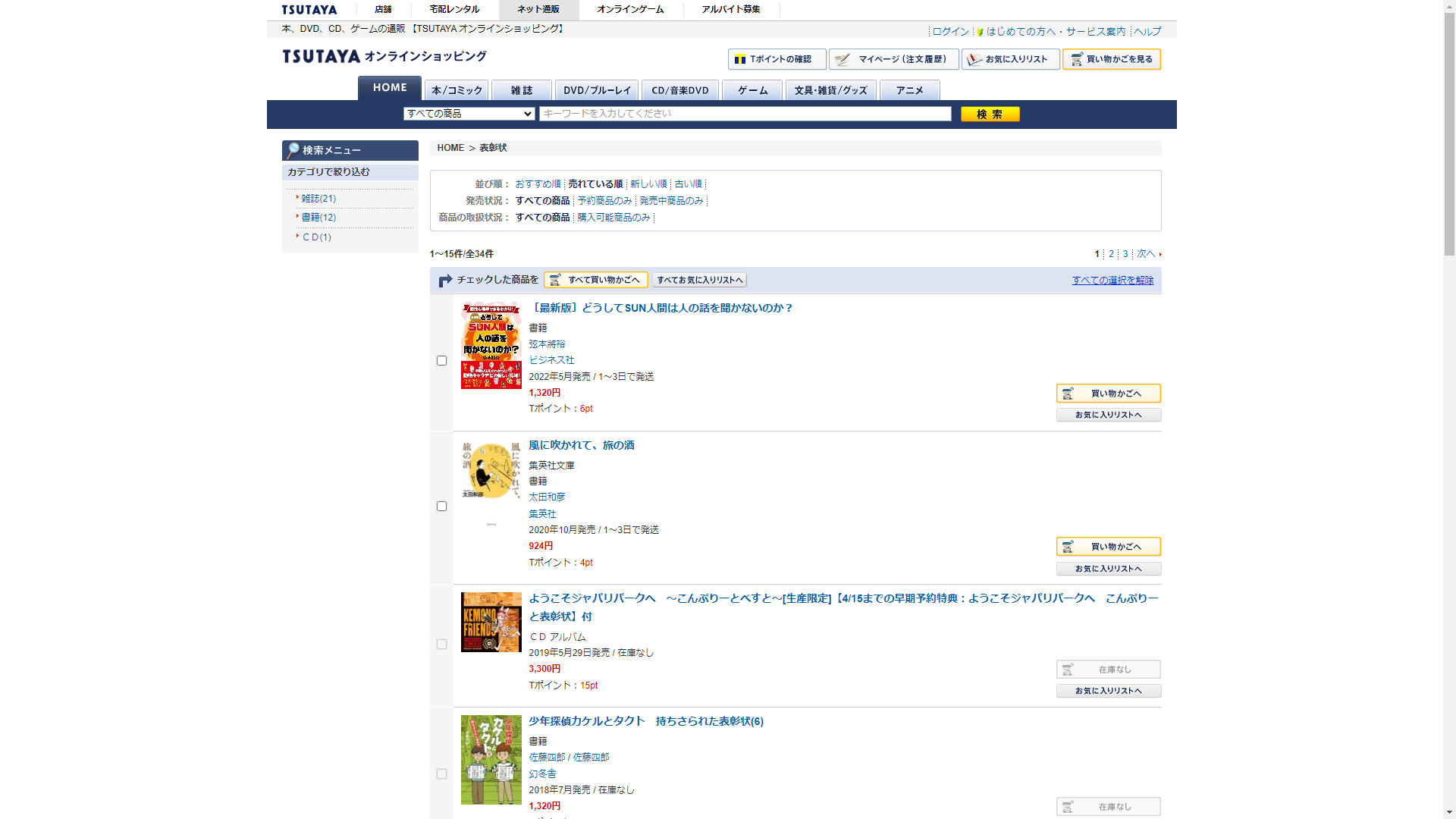 お調べしたところ現在、蔦屋書店では表彰状の関連する商品が販売されています。