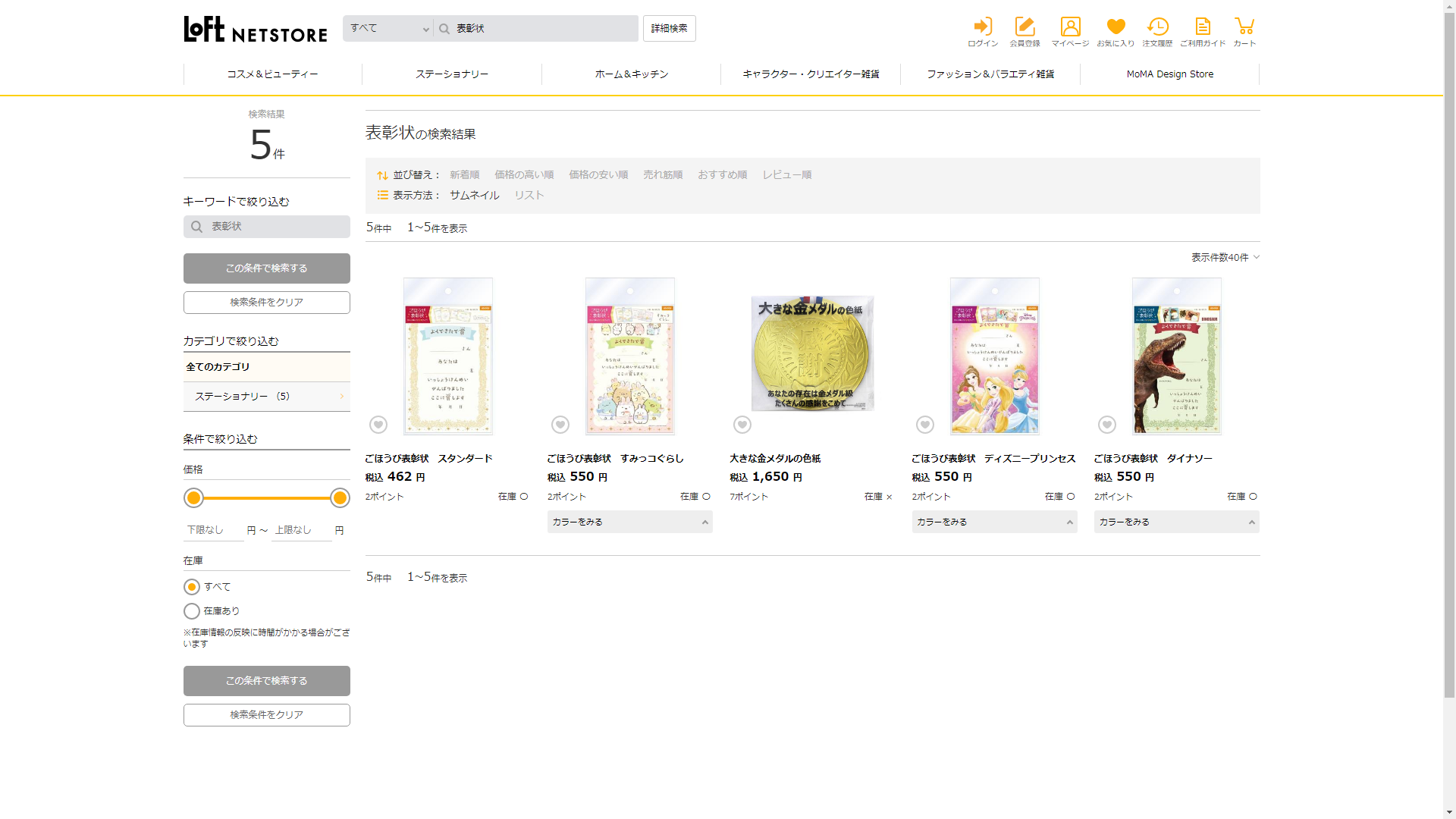 お調べしたところ現在、ロフトでは表彰状に関連する商品が販売されています。