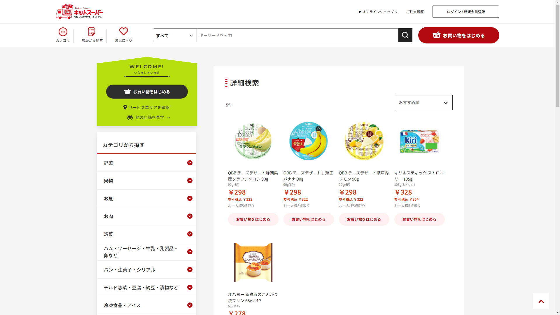 お調べしたところ現在、東急ストアではチーズデザートの関連する商品が販売されています。