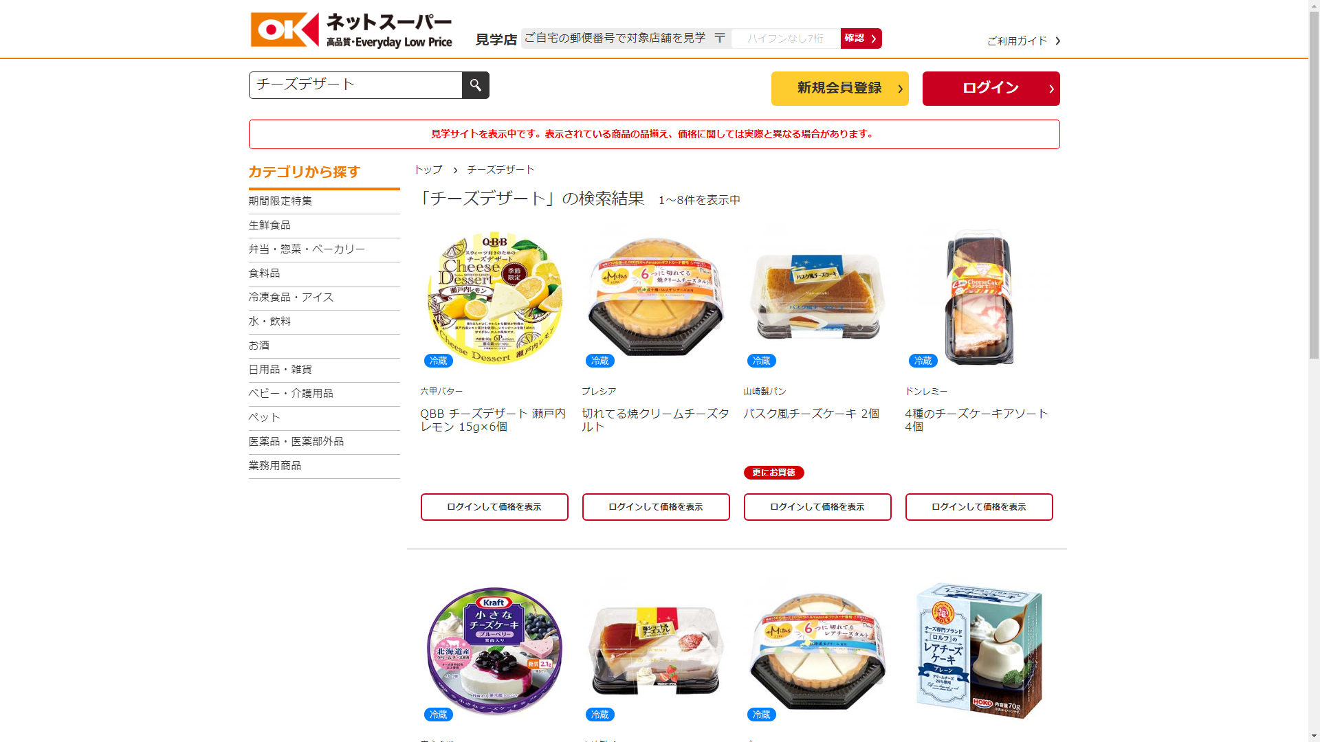 お調べしたところ現在OKネットスーパーではチーズデザートに関連する商品が販売されています。