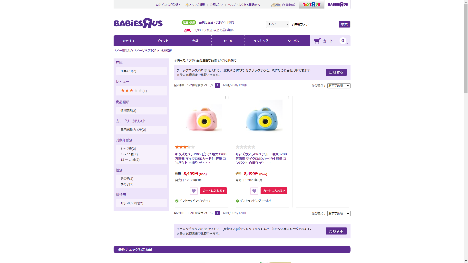 お調べしたところ現在、ベビーザらスでは子供用カメラに関連する商品を買うことが可能です。
