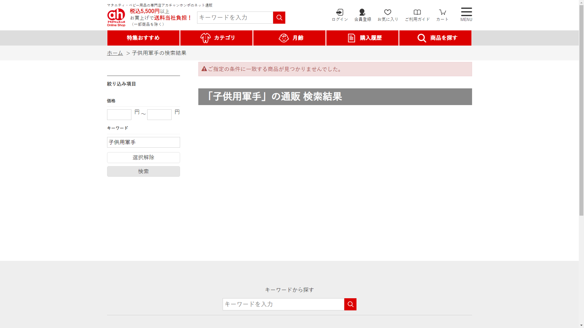 子供用軍手はアカチャン本舗には売っていません