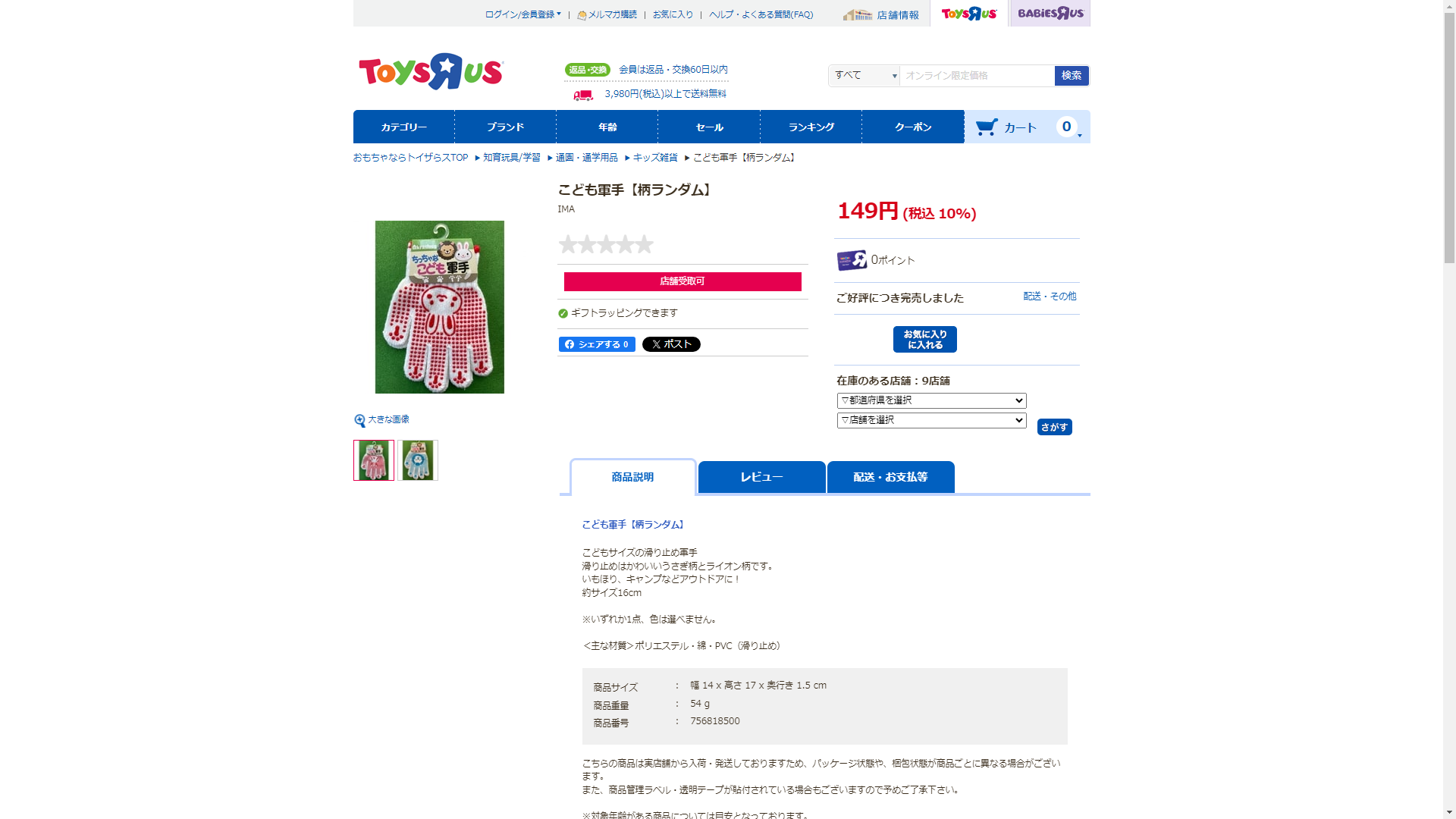 お調べしたところ現在、ベビーザらスではこども 軍手に関連する商品を買うことが可能です。