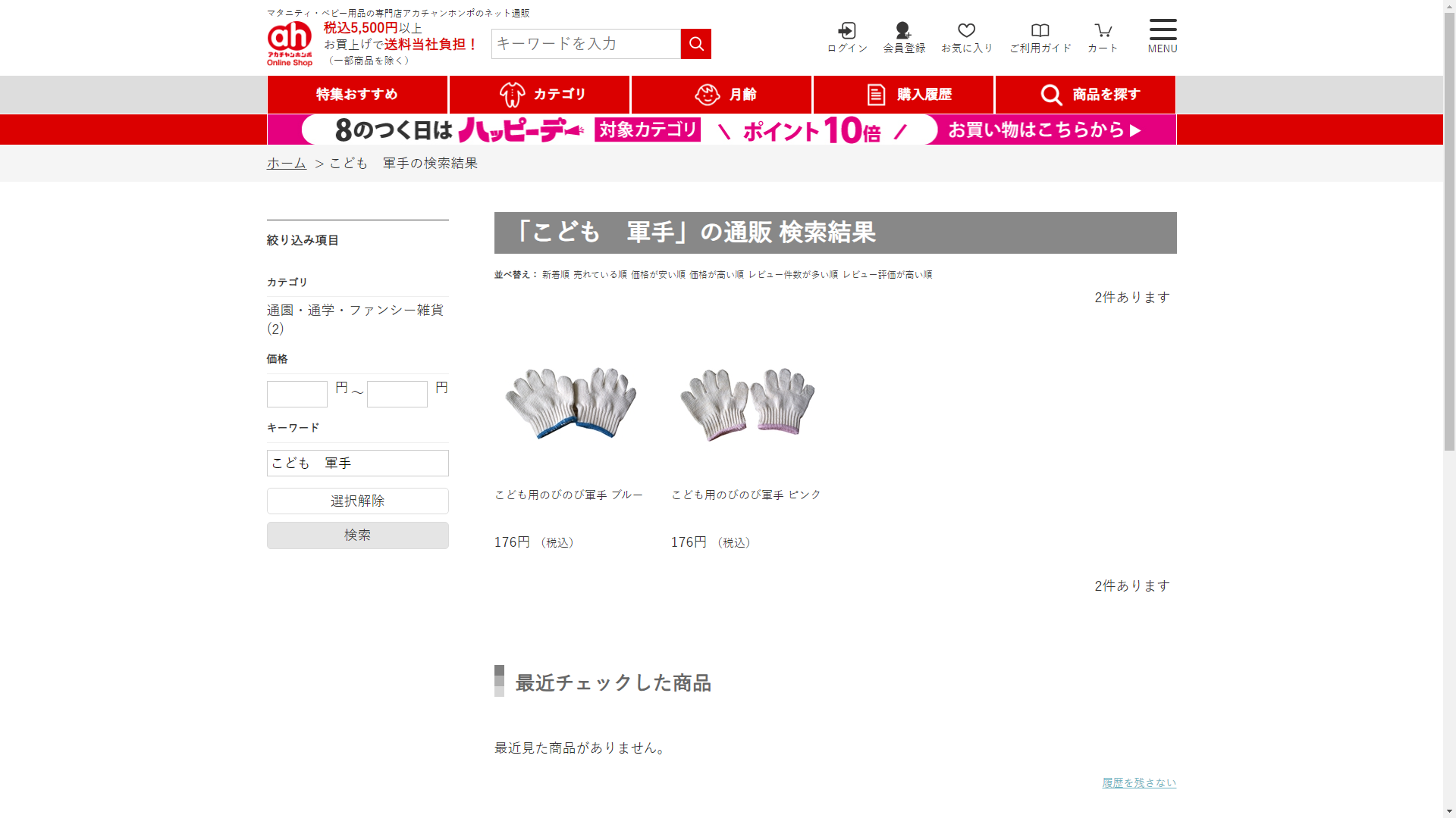 お調べしたところ現在、アカチャン本舗ではこども 軍手の関連する商品が販売されています。